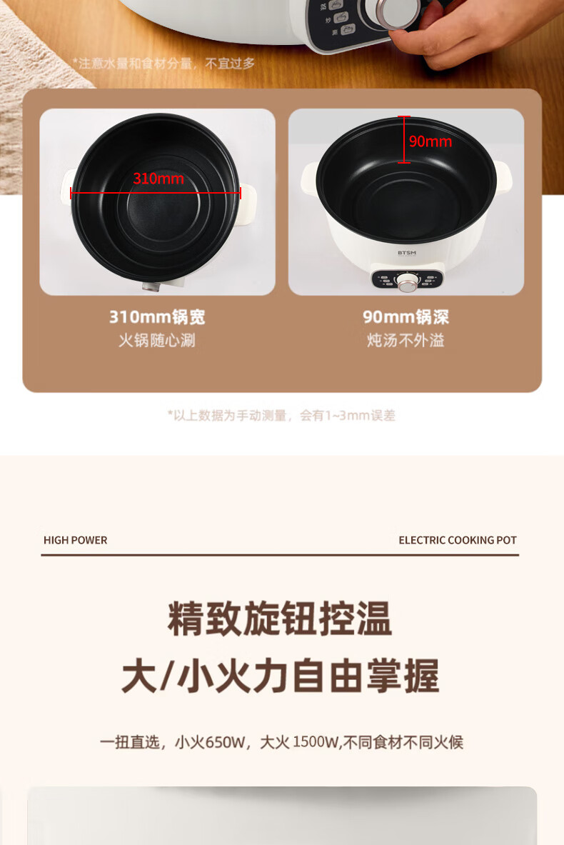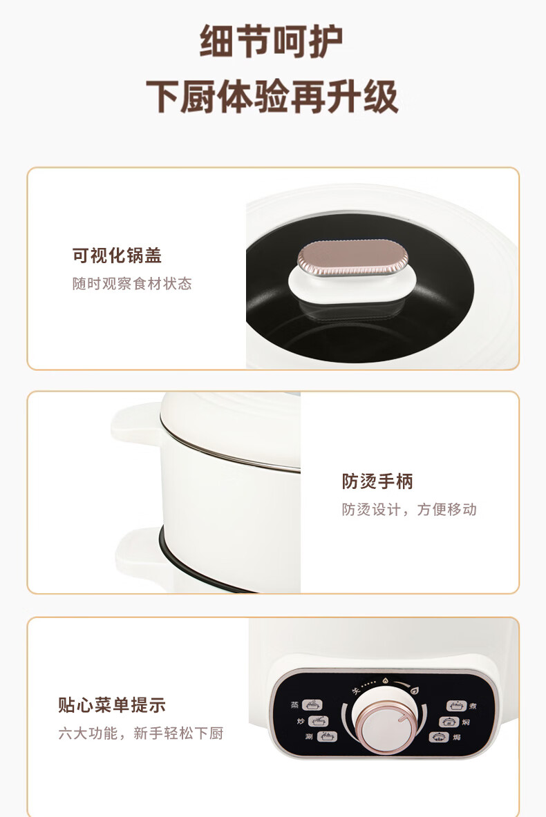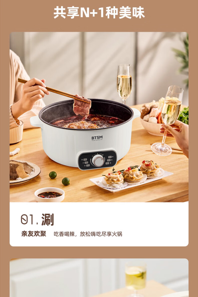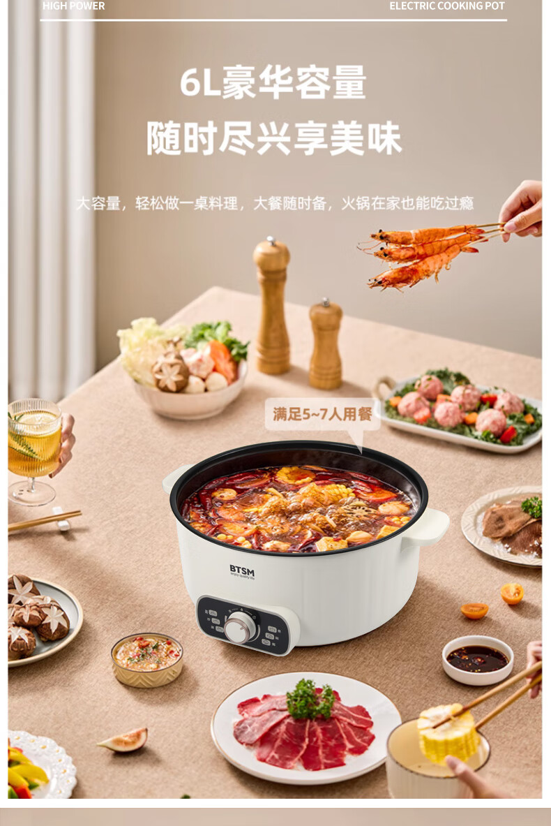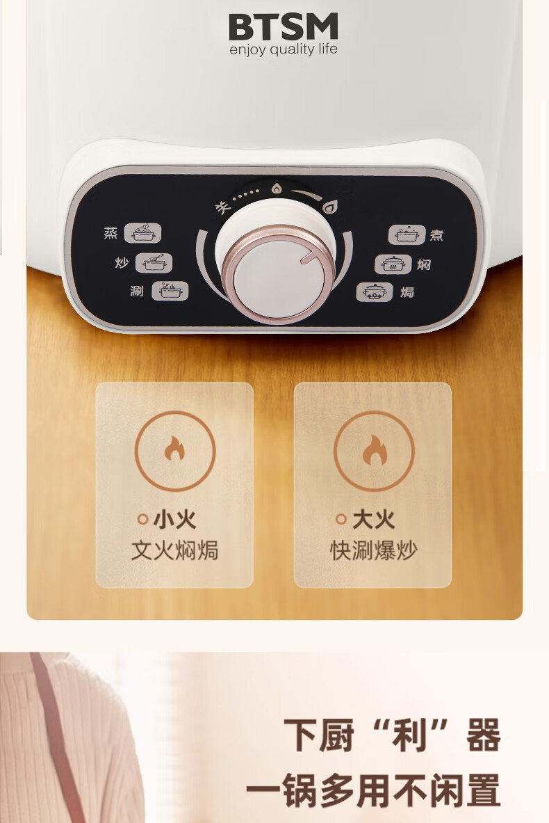 BTSM 多用途电锅 BTZL-J1521 额定容量:12L(火锅6L+蒸格6L) 白色(单位:台)
