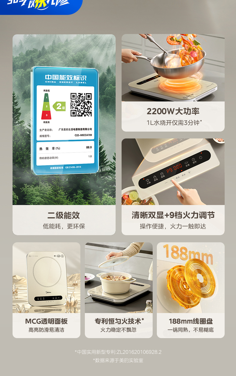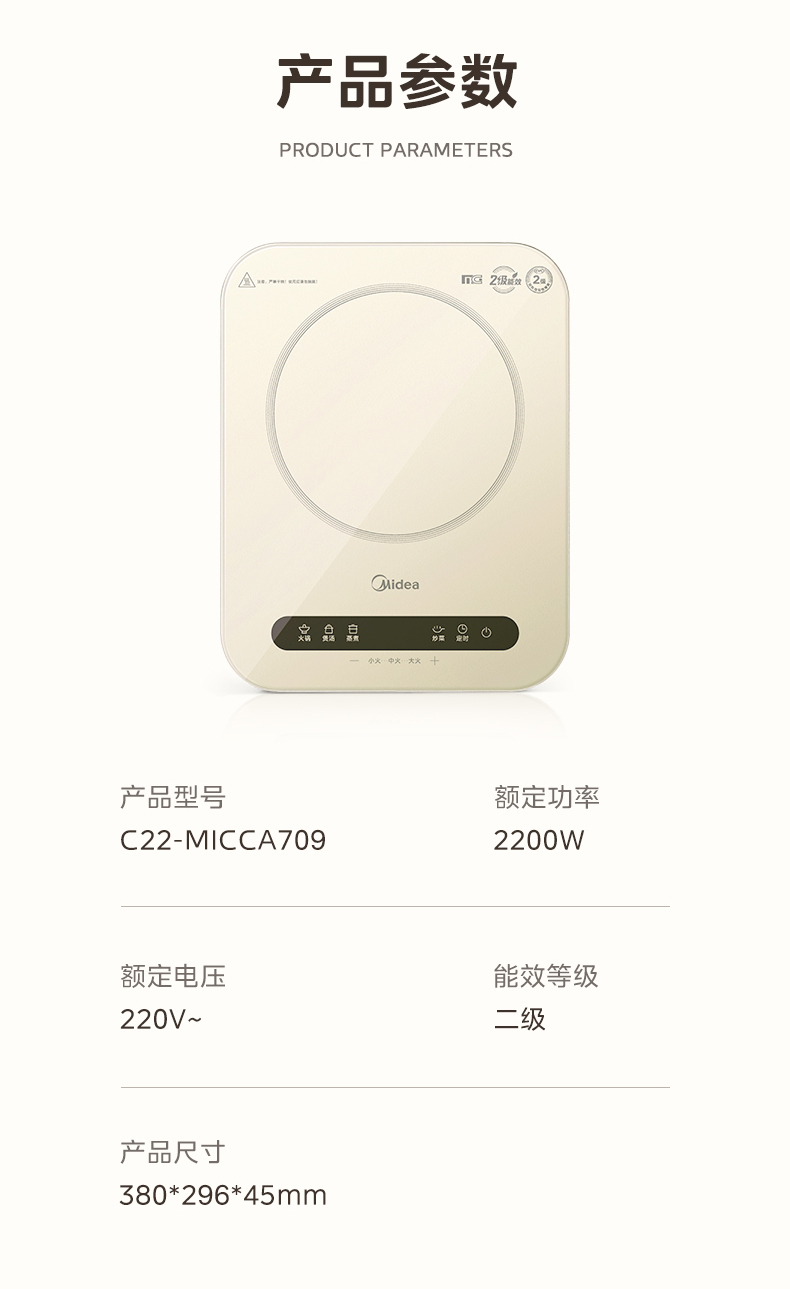 美的(Midea) 电磁炉 C22-MICCA709 2200w 香槟金(单位:台)