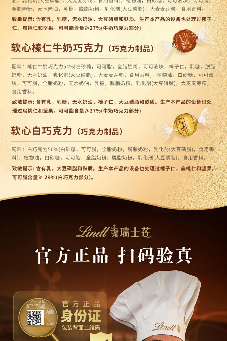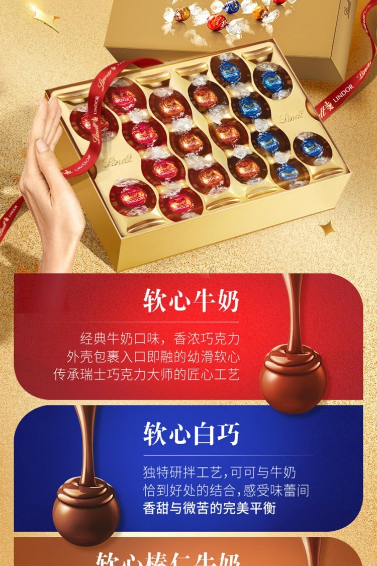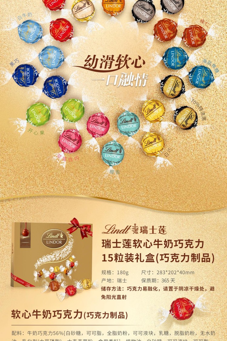 瑞士莲 软心精选巧克力15粒装礼盒(独家定制) 混合口味 180g 玫瑰金(单位:盒)