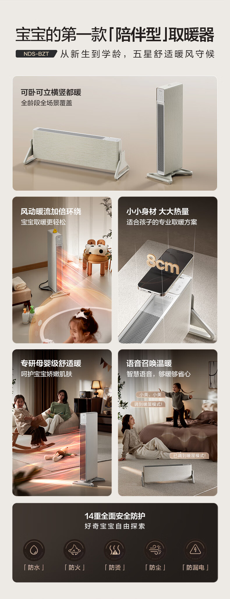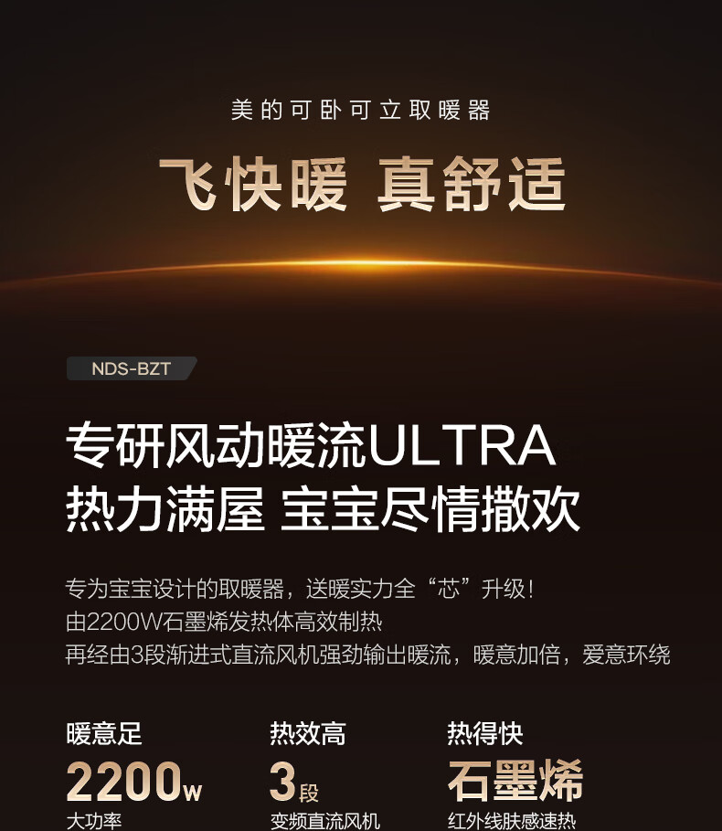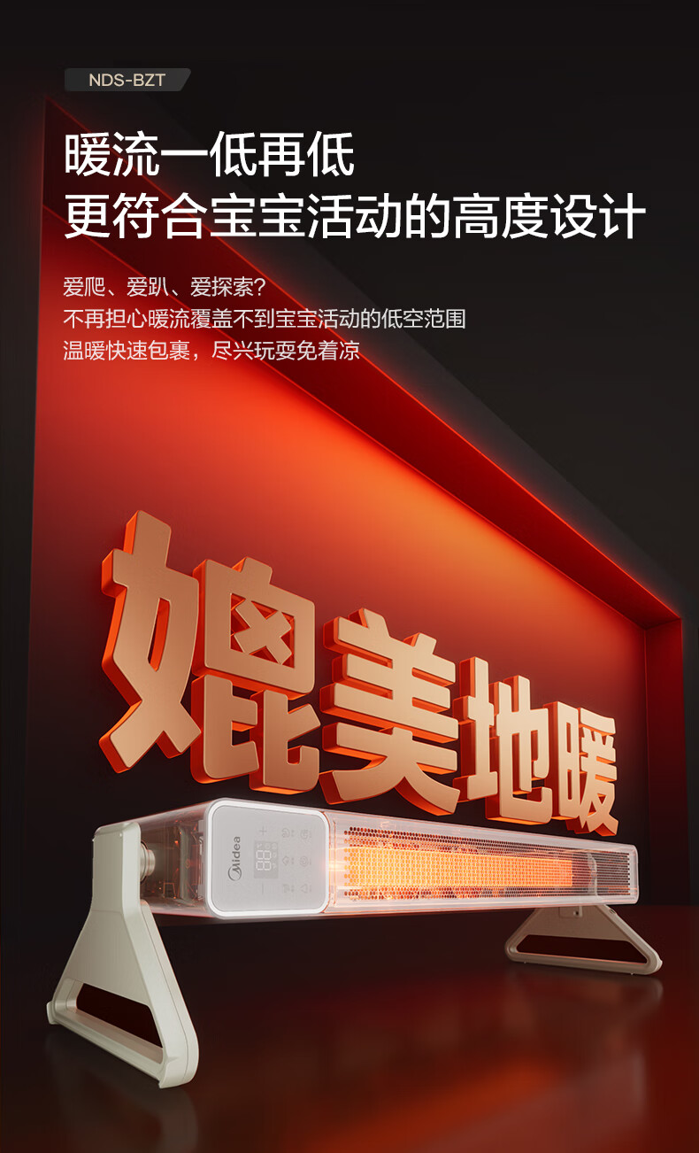 美的(Midea) 石墨烯家用踢脚线取暖器 NDS-BZT 2200W 白色(单位:台)