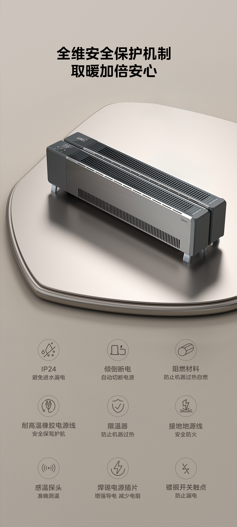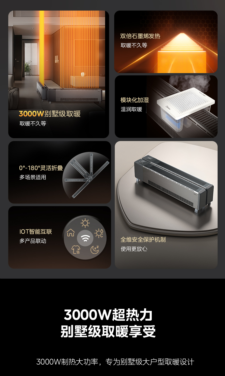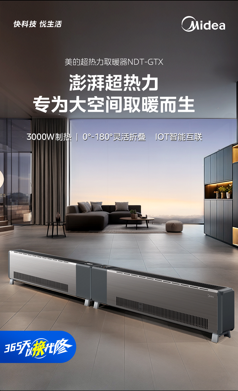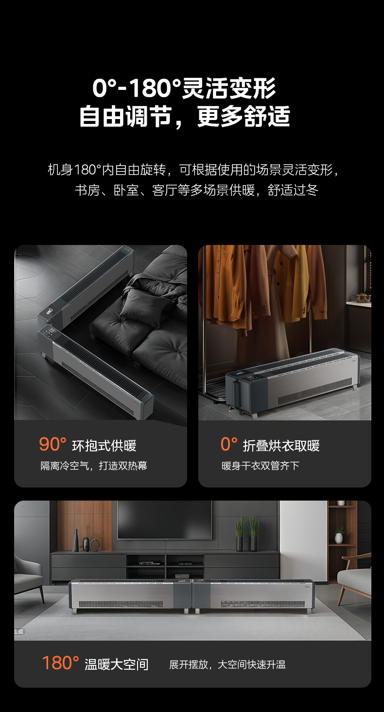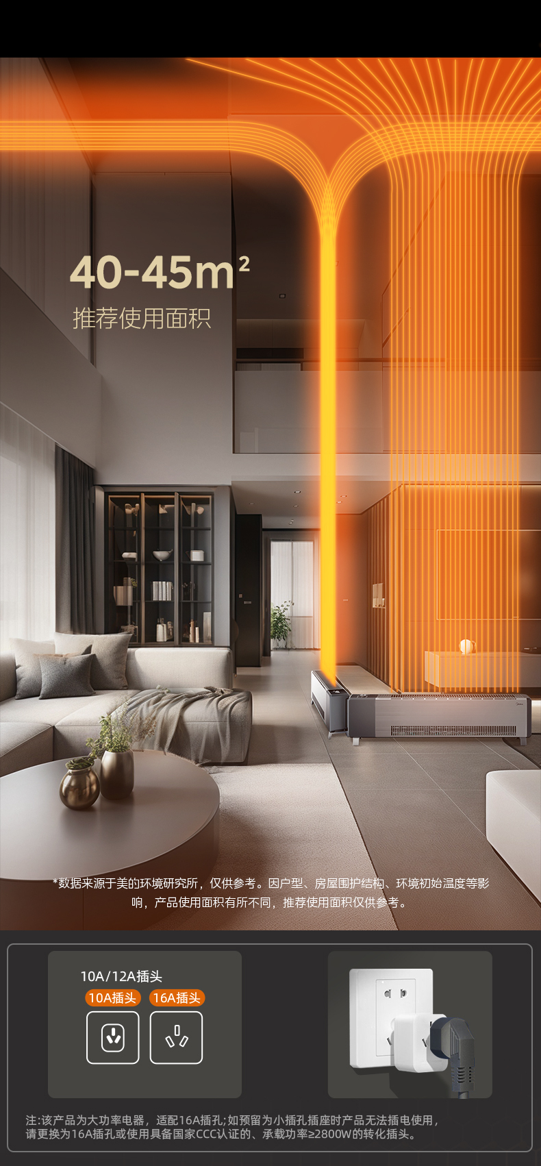 美的(Midea) 石墨烯踢脚线取暖器 NDT-GTX 3000W 黑色(单位:台)