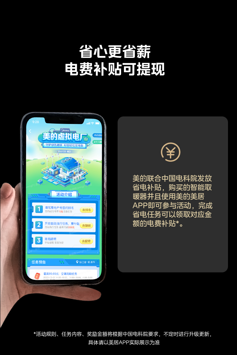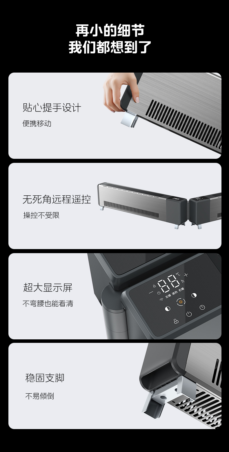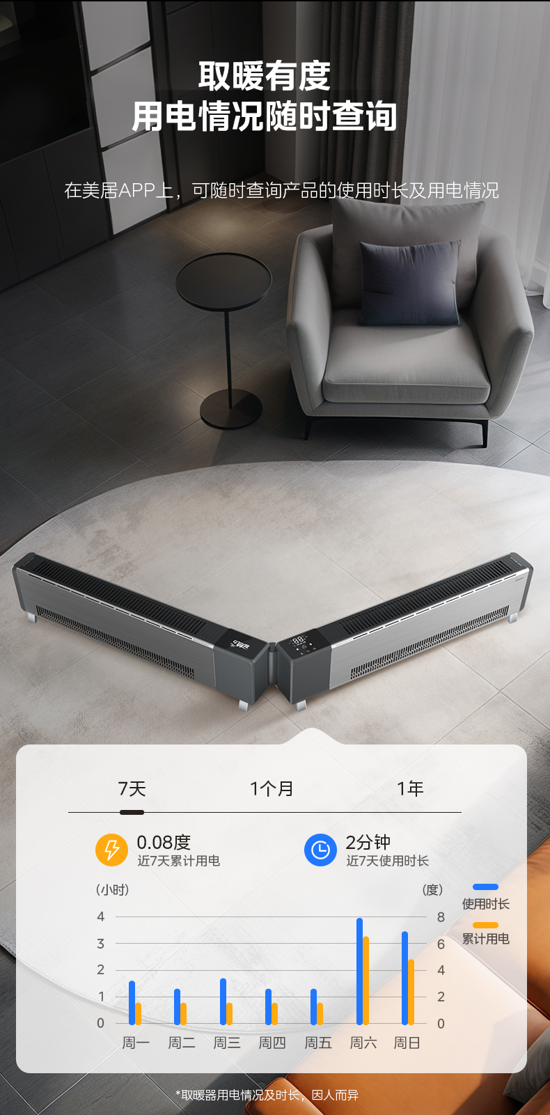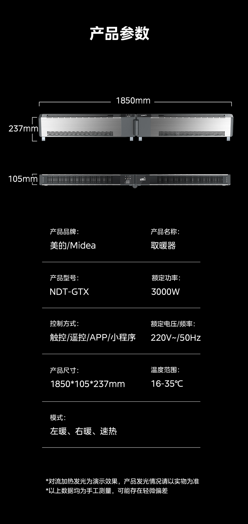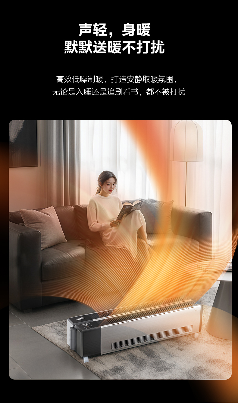 美的(Midea) 石墨烯踢脚线取暖器 NDT-GTX 3000W 黑色(单位:台)