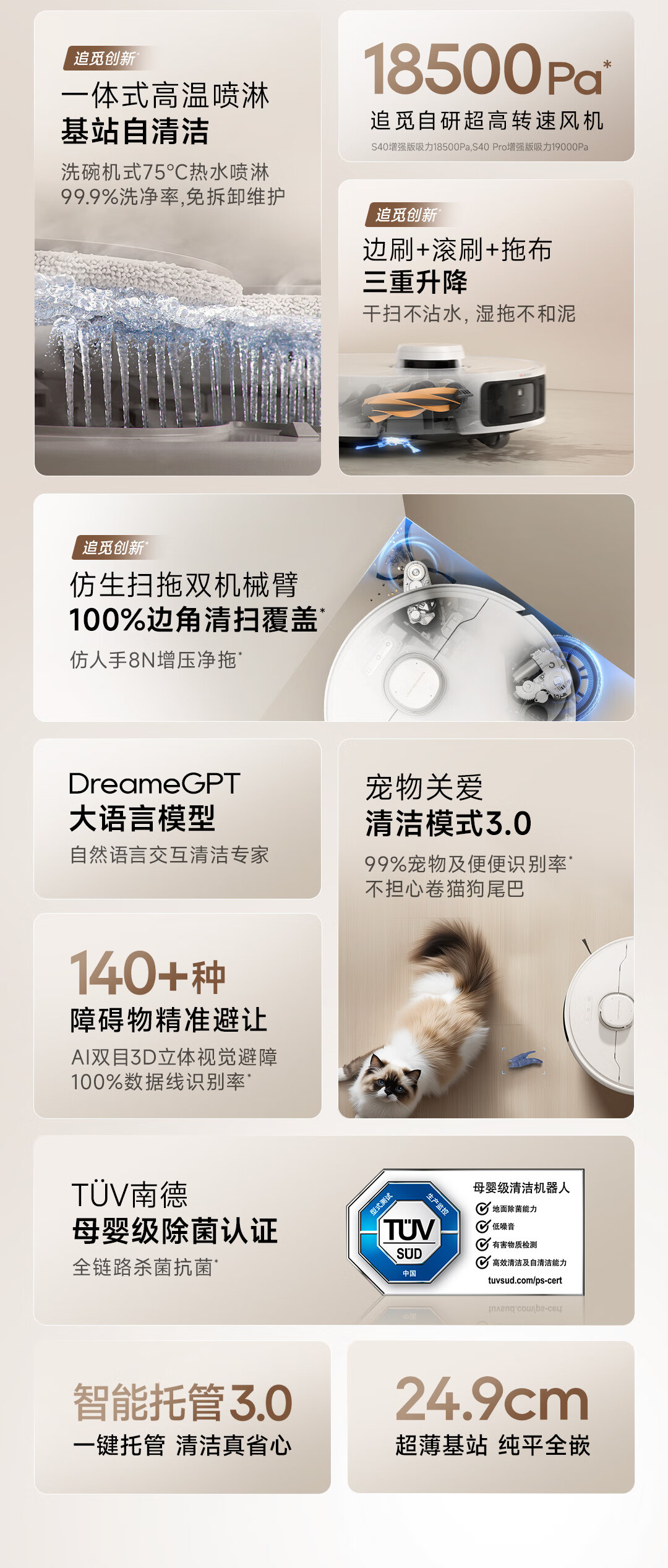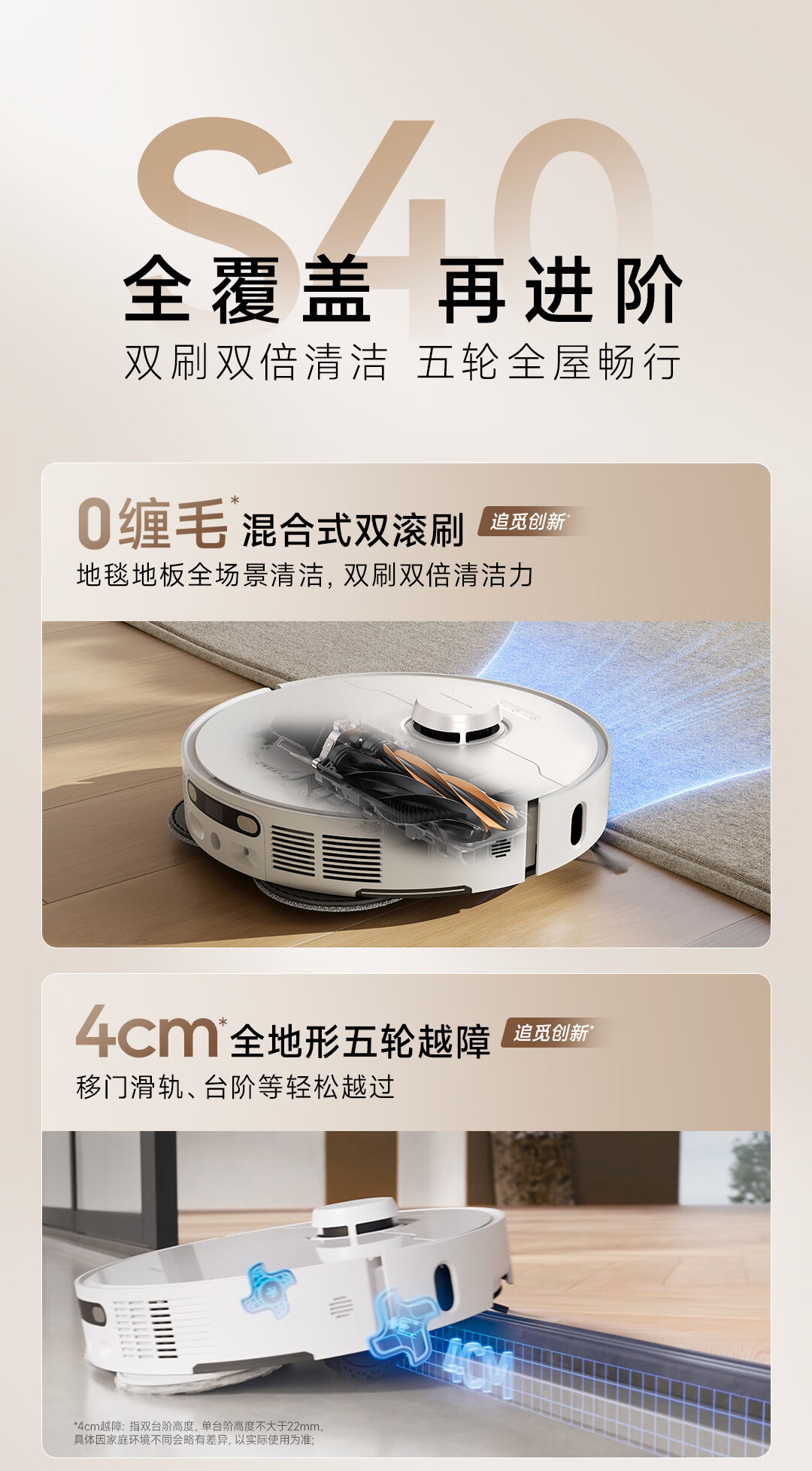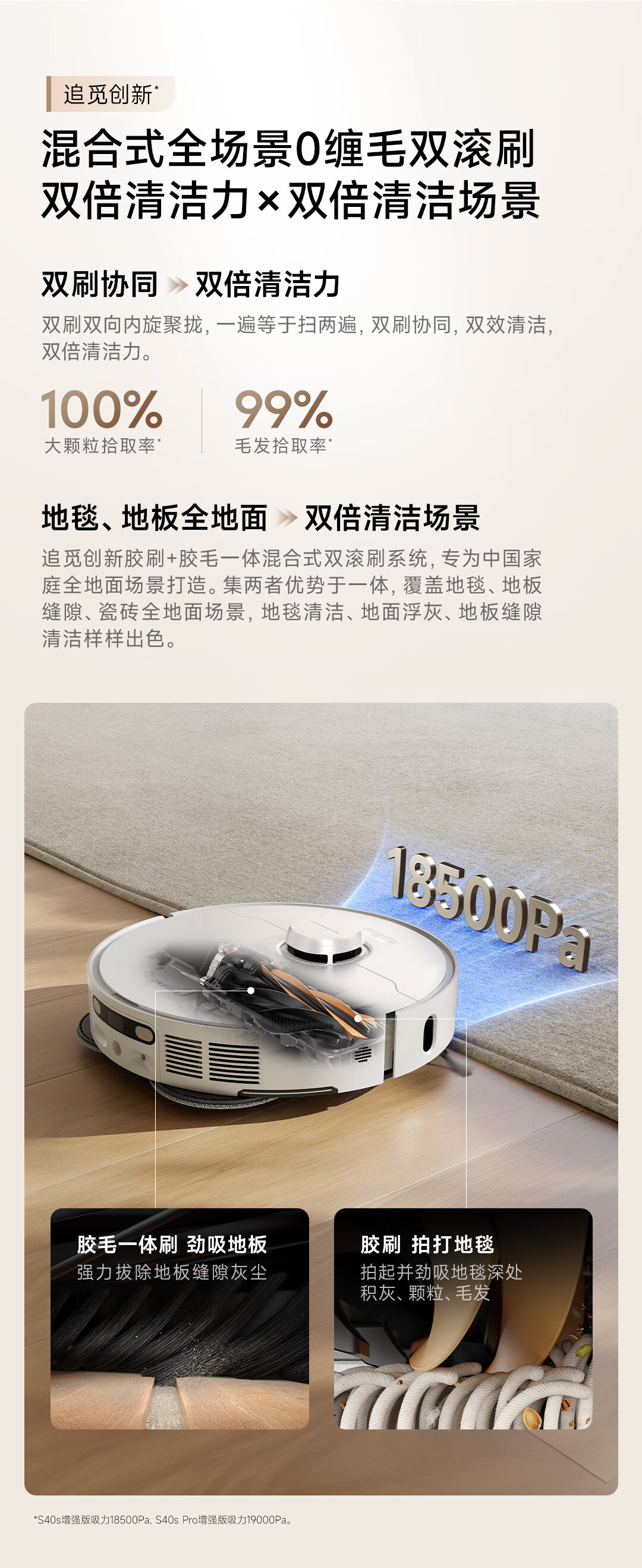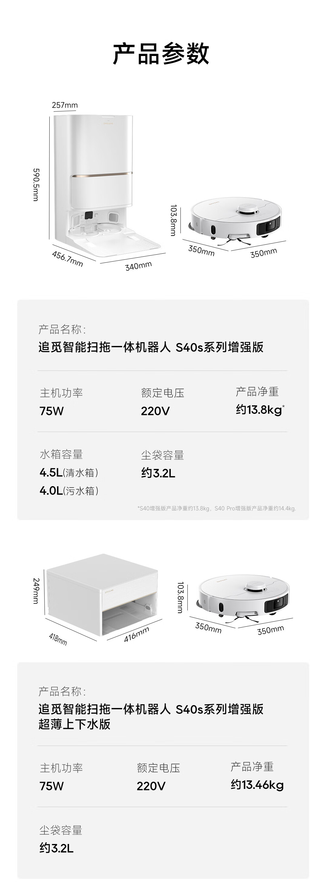 追觅 扫地机器人 S40s【增强版】 75W主机功率 白色(单位:台)