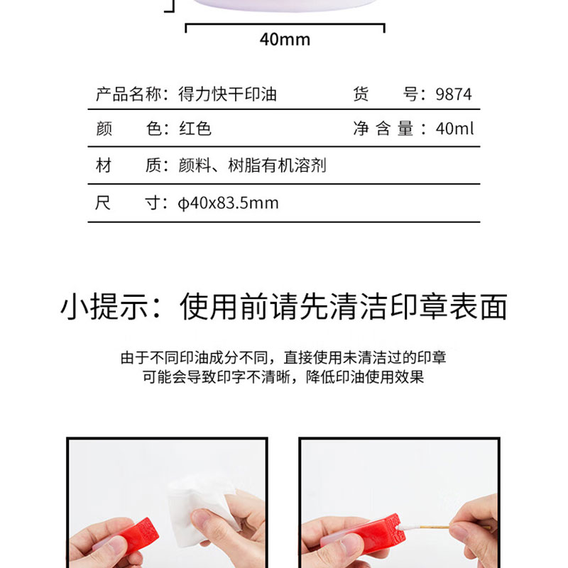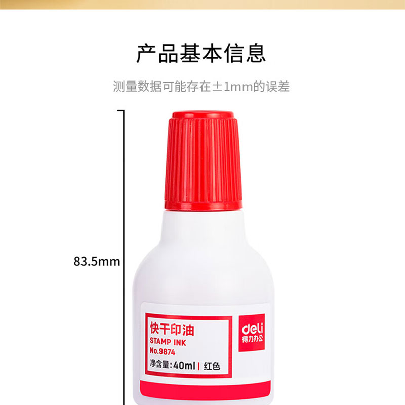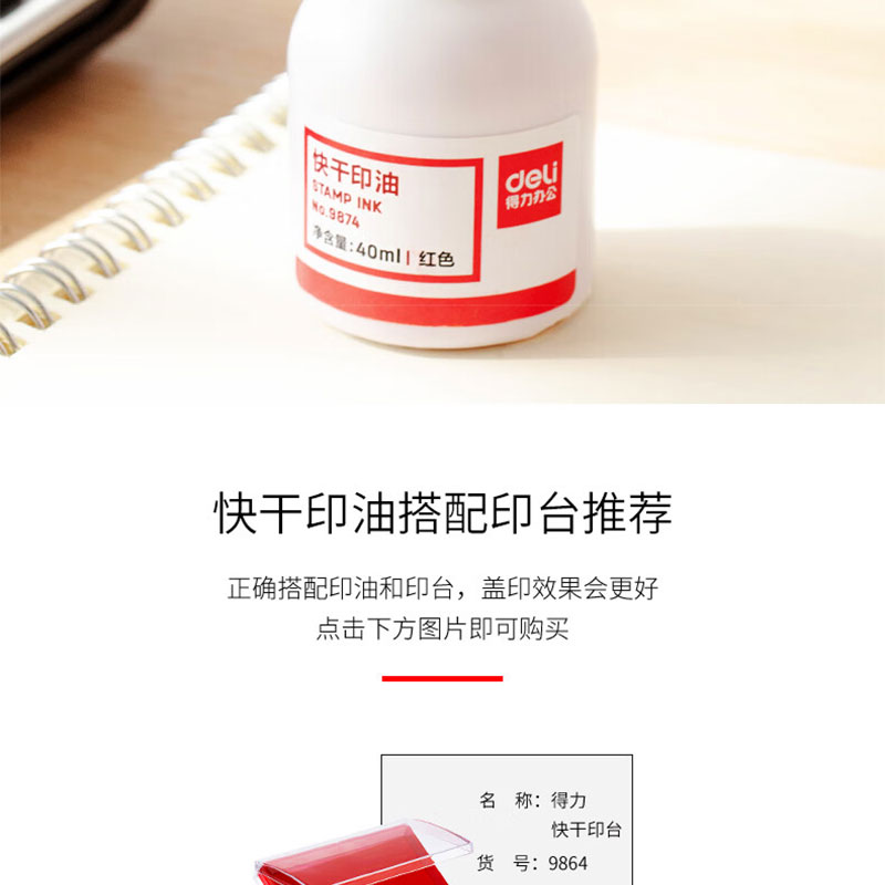 得力(deli) 印油 9874 40ml 红色(单位:瓶)