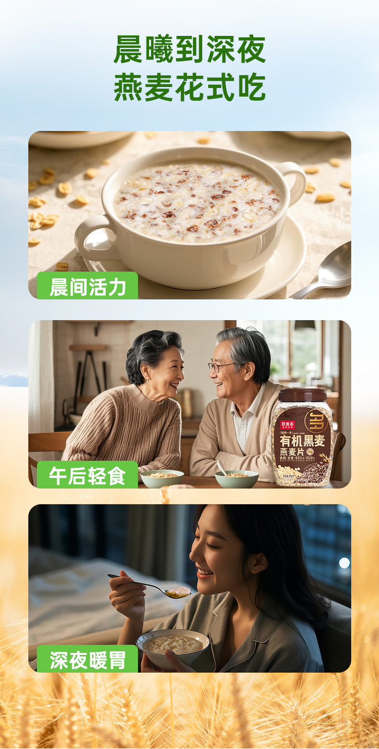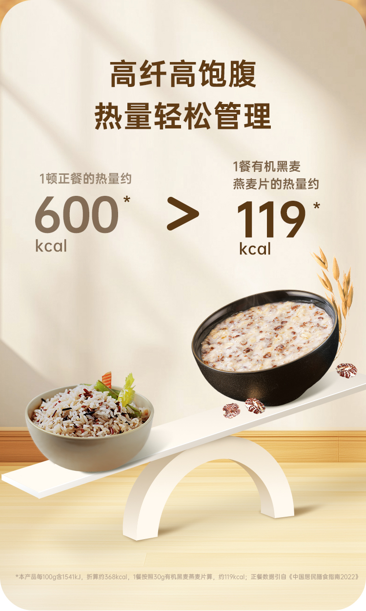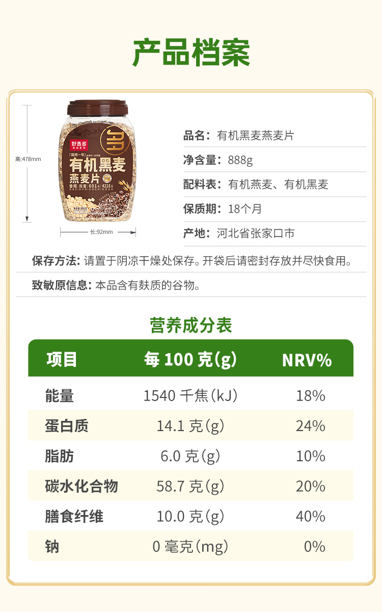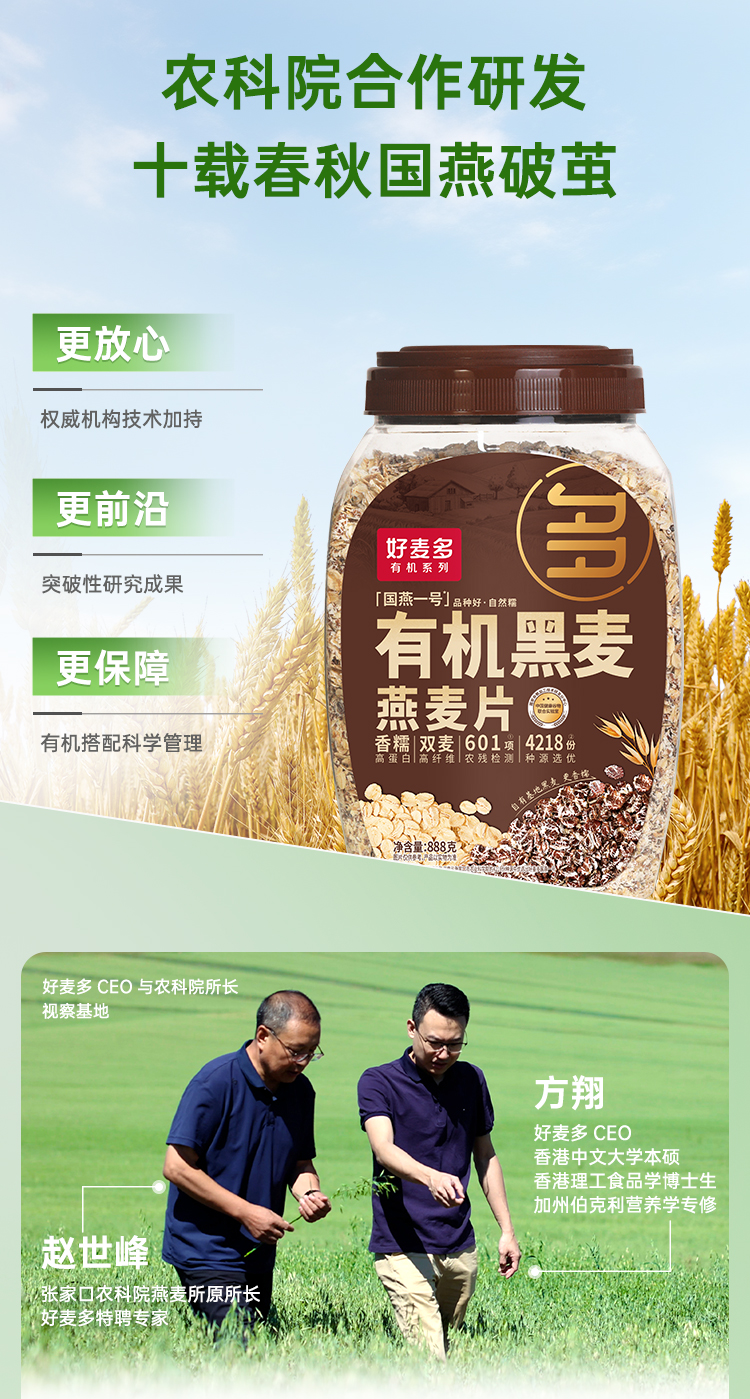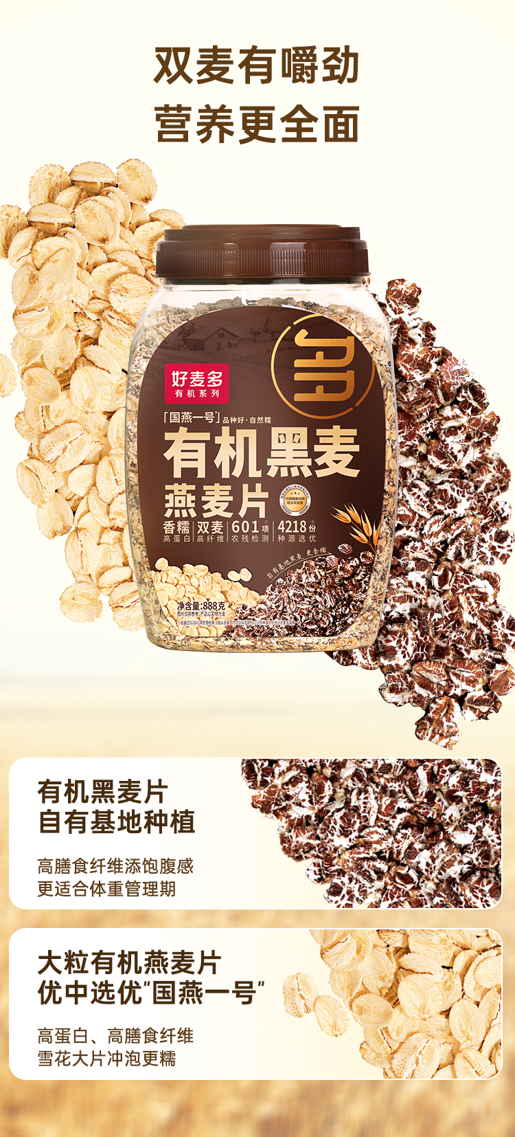 好麦多(HONlife) 有机黑麦燕麦片高蛋白营养冲泡即食代早餐 黑白双麦 888g*罐 混色(单位:罐)