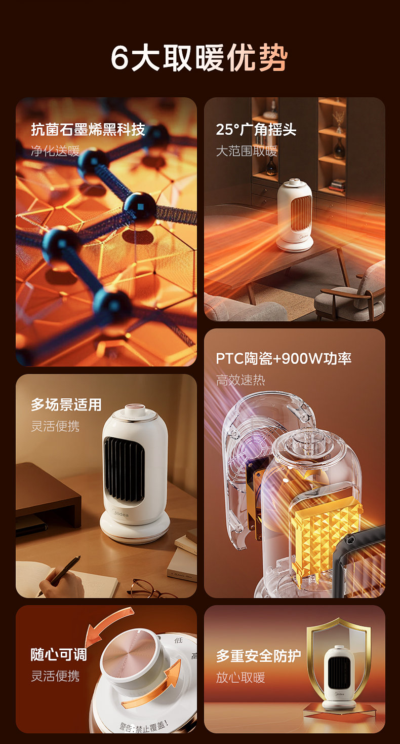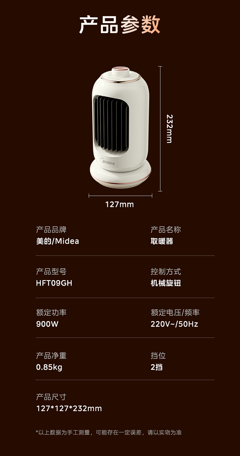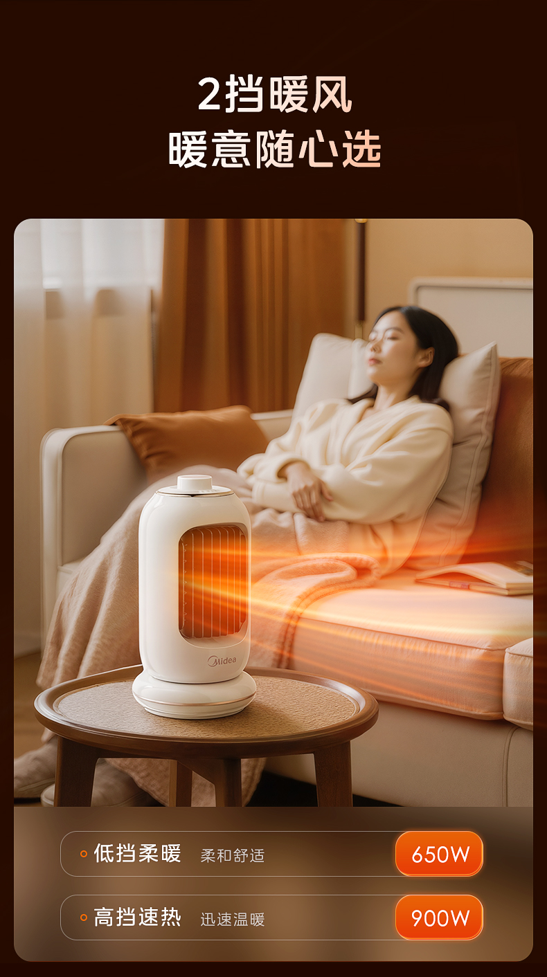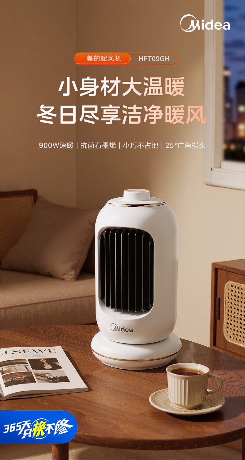 美的(Midea) 取暖器 HFT09GH 900W 白色(单位:台)