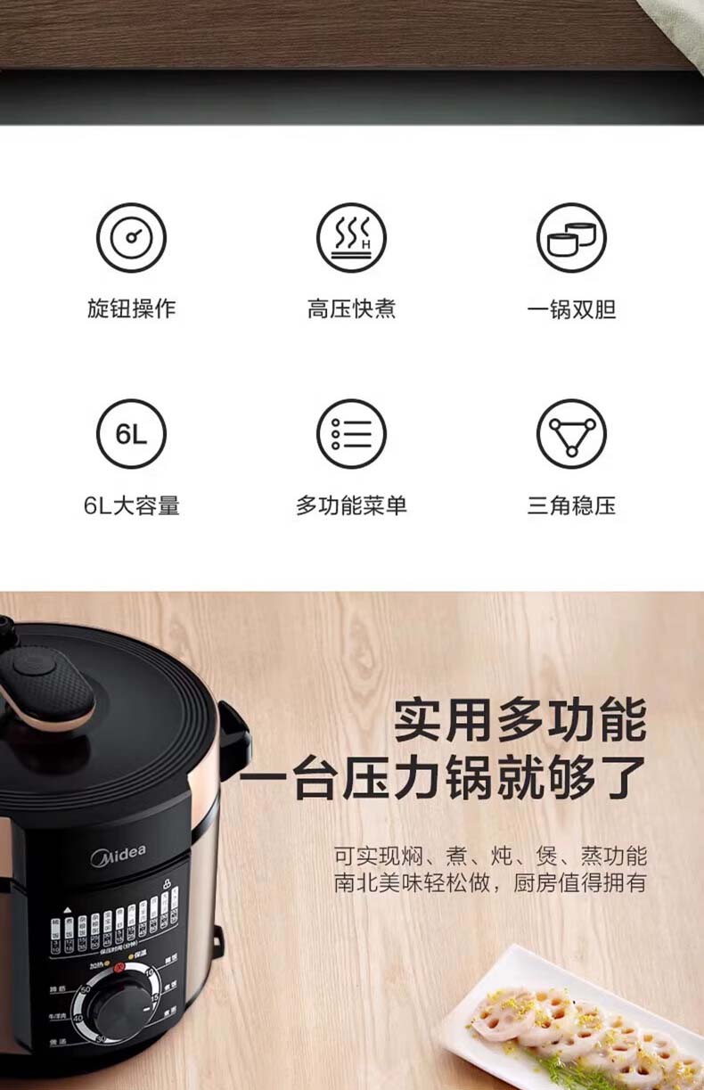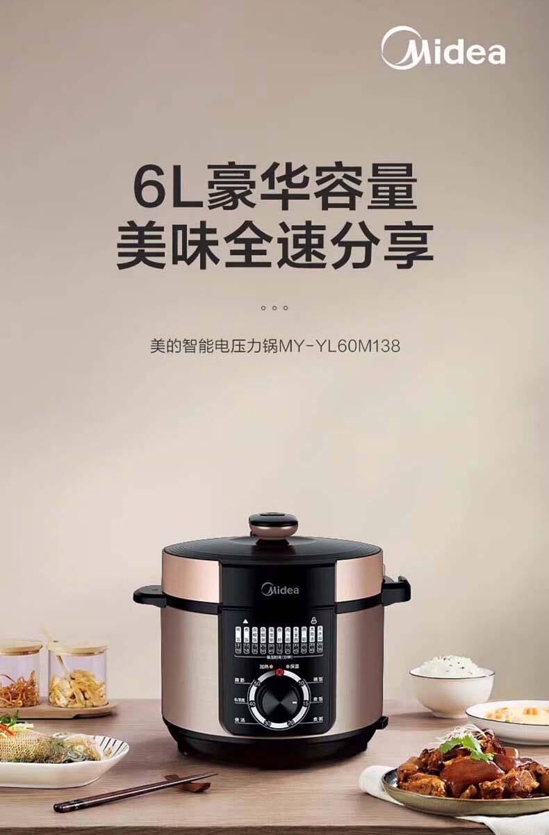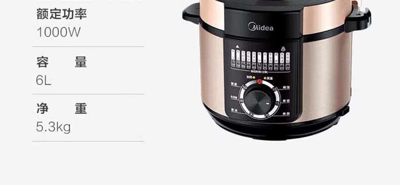 美的(Midea) 电压力锅 MY-YL60M138 6L 香槟色(单位:台)