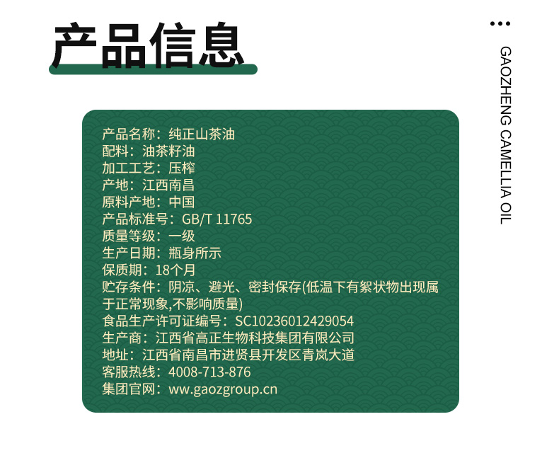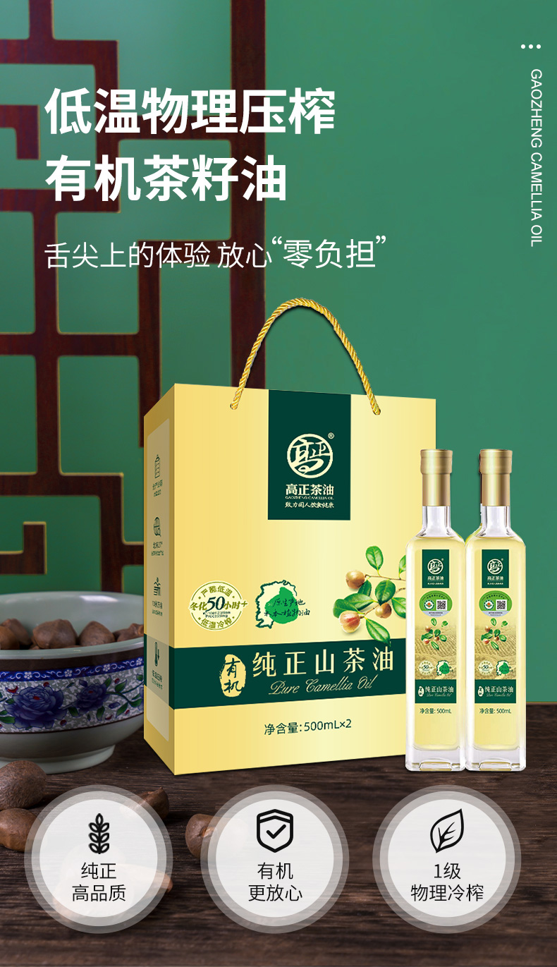 高正 物理冷榨 有机纯正山茶油 500ml*2瓶礼盒装 500ml*2 混色(单位:盒)