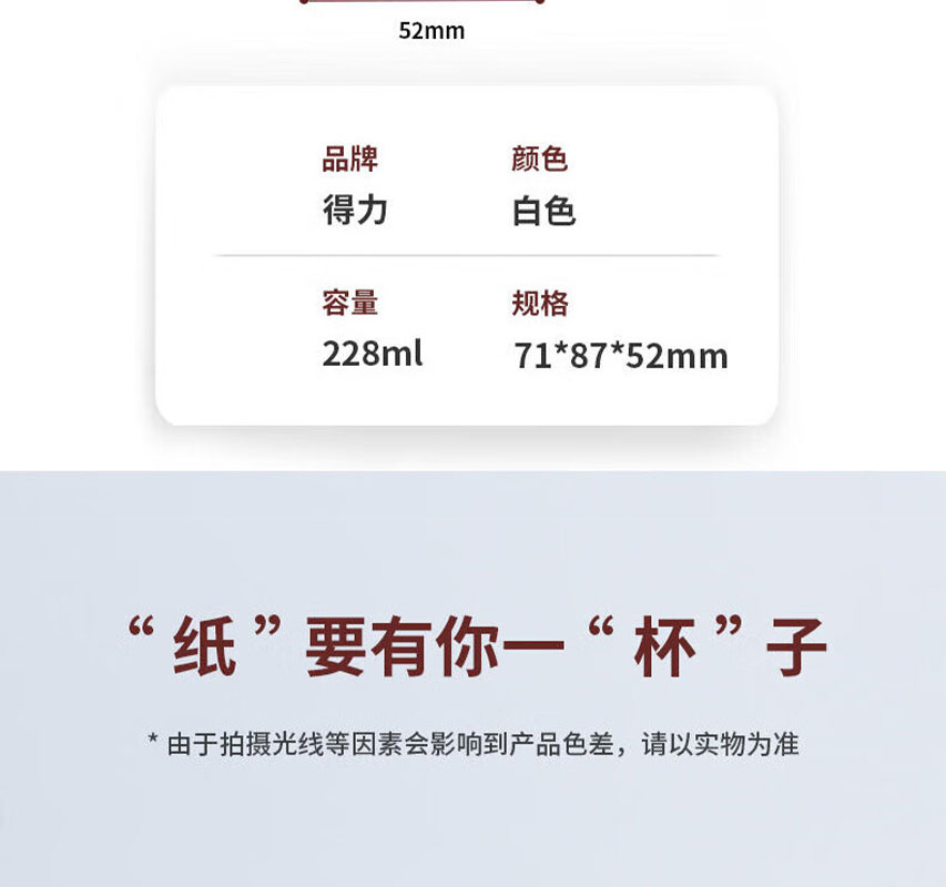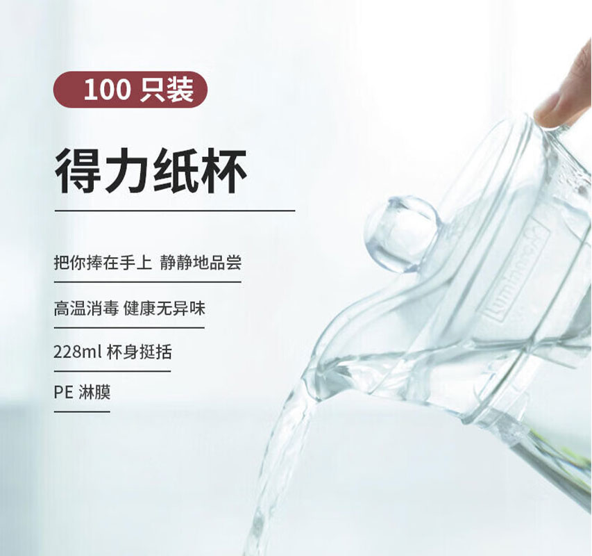 得力(deli) 一次性纸杯 19205 228ml*100个 白色 条纹(单位:包)
