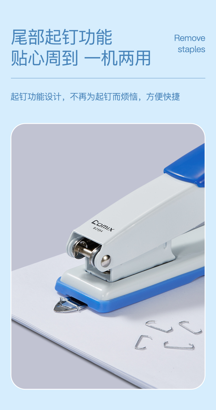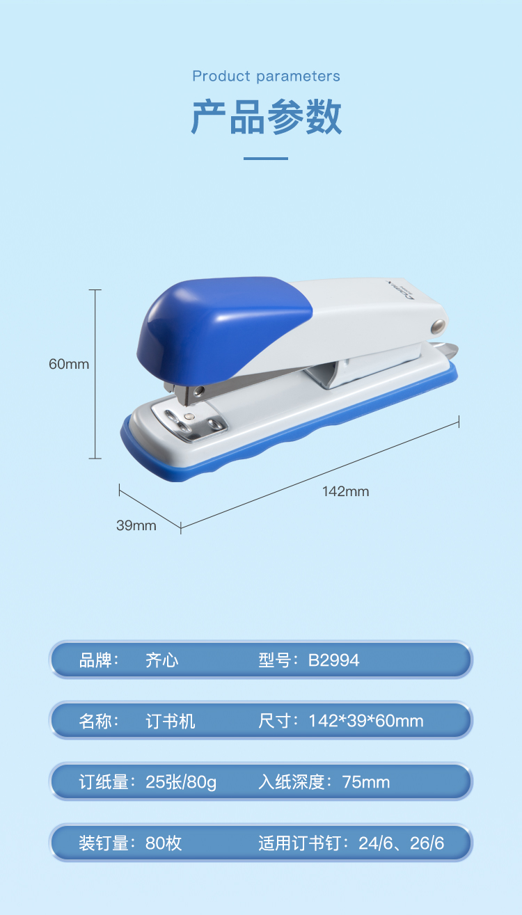 齐心(COMIX) 订书机 B2994 142*60*39mm 蓝色(单位:台)