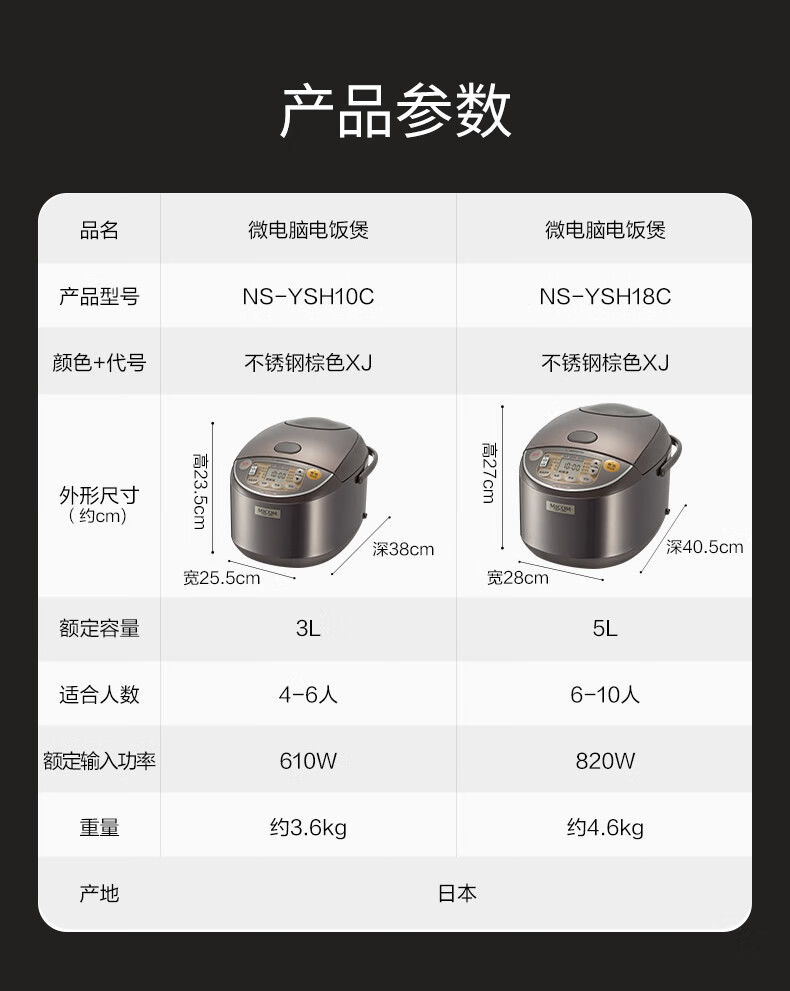 象印(ZO JIRUSHI) 3升微电脑电饭煲 NS-YSH10C-XJ 3L 咖色(单位:台)