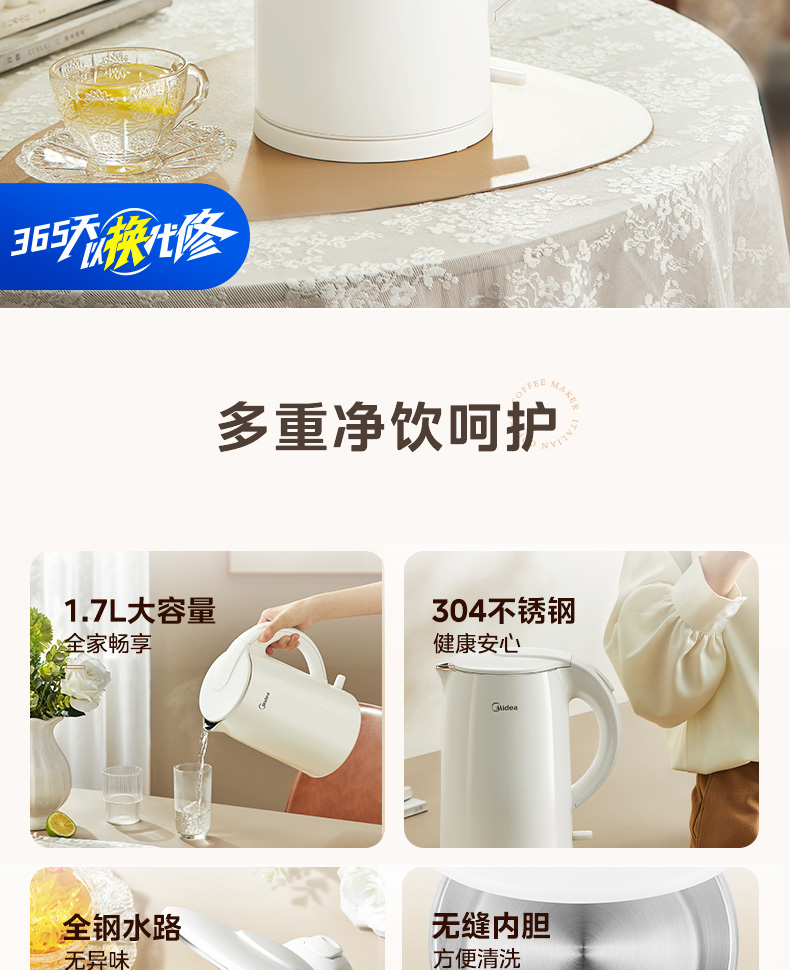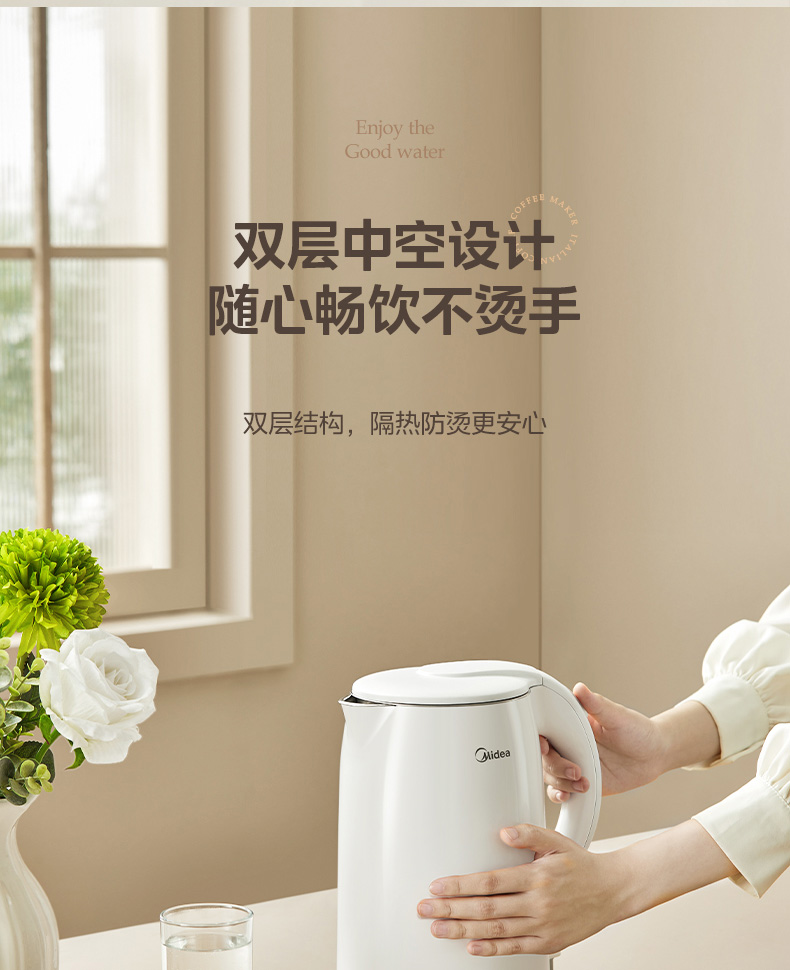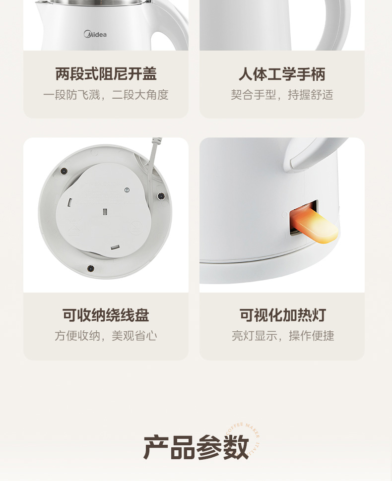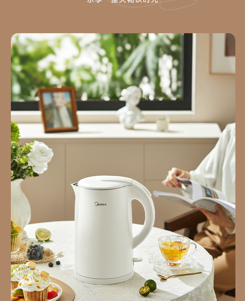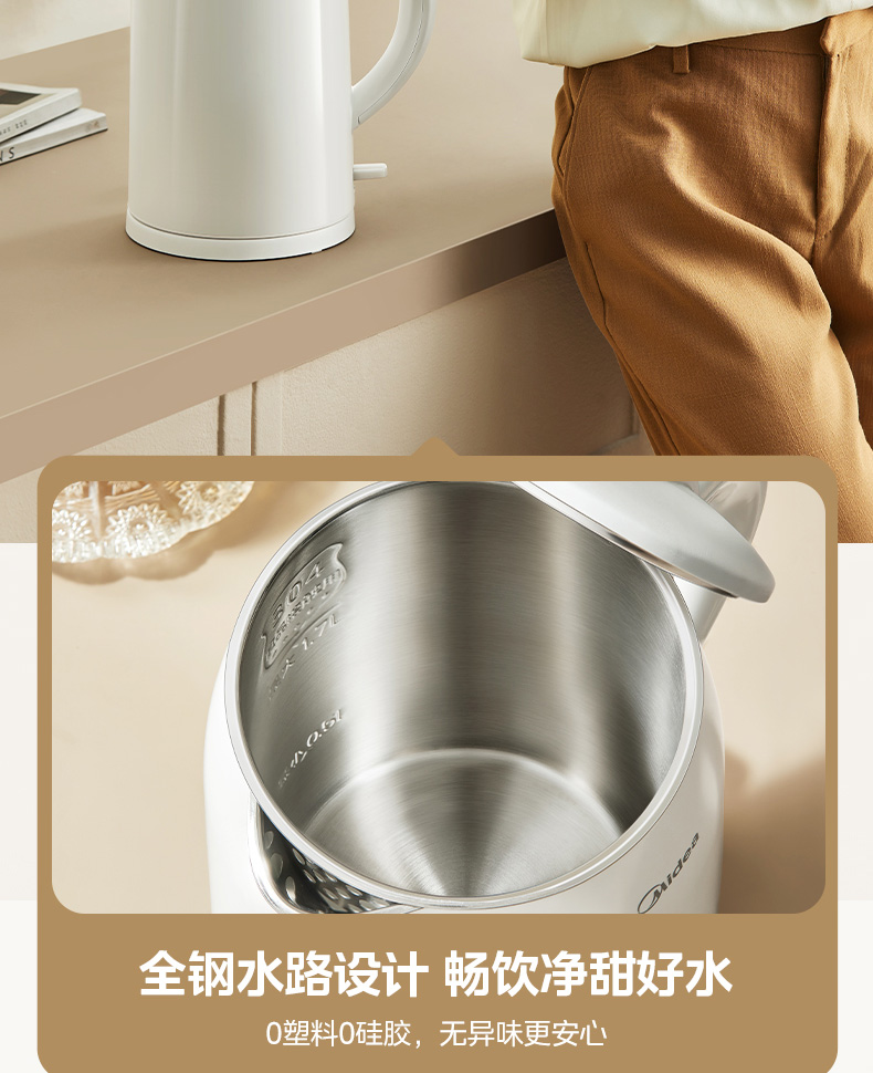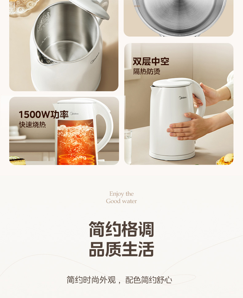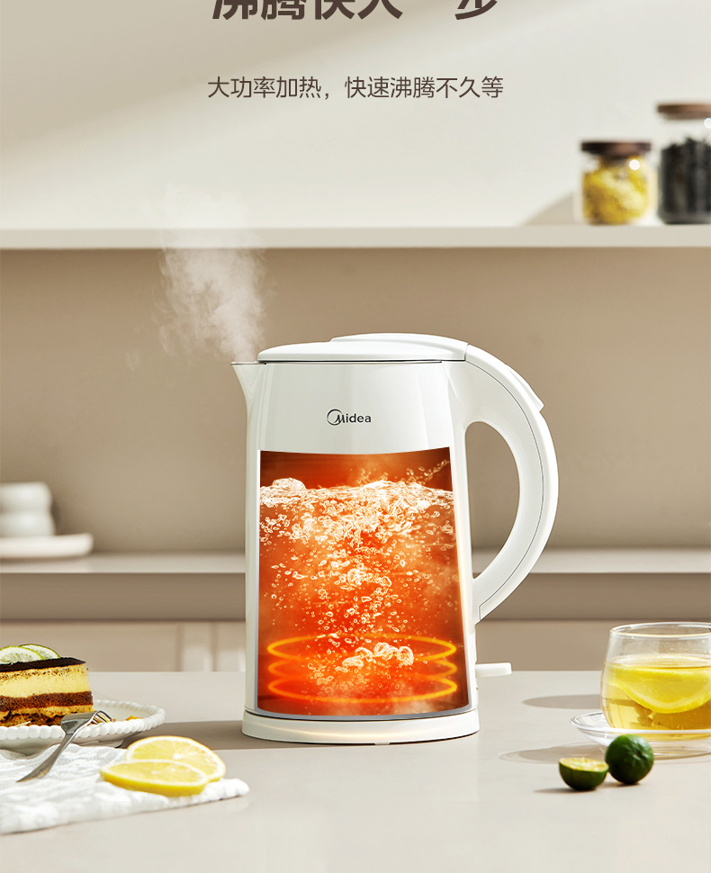 美的(Midea) 电热水壶 双层防烫隔热 无缝一体内胆电水壶 MK-H517E3 1.7L 白色(单位:台)
