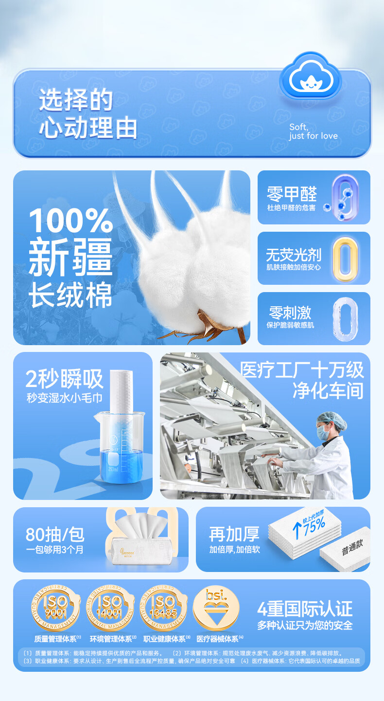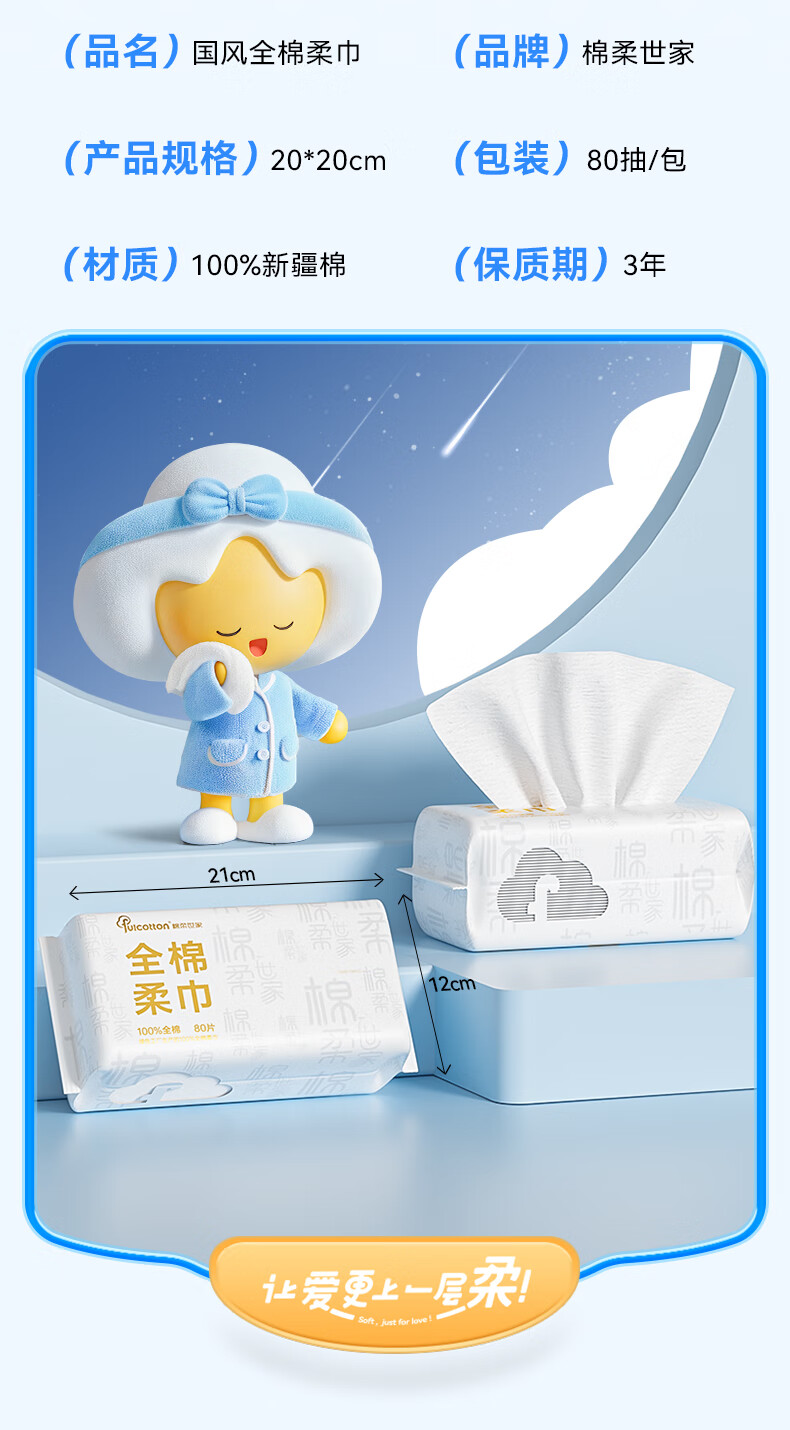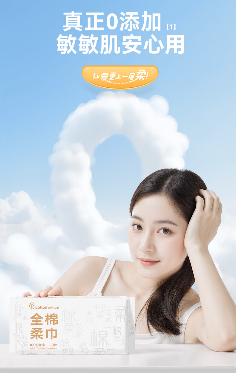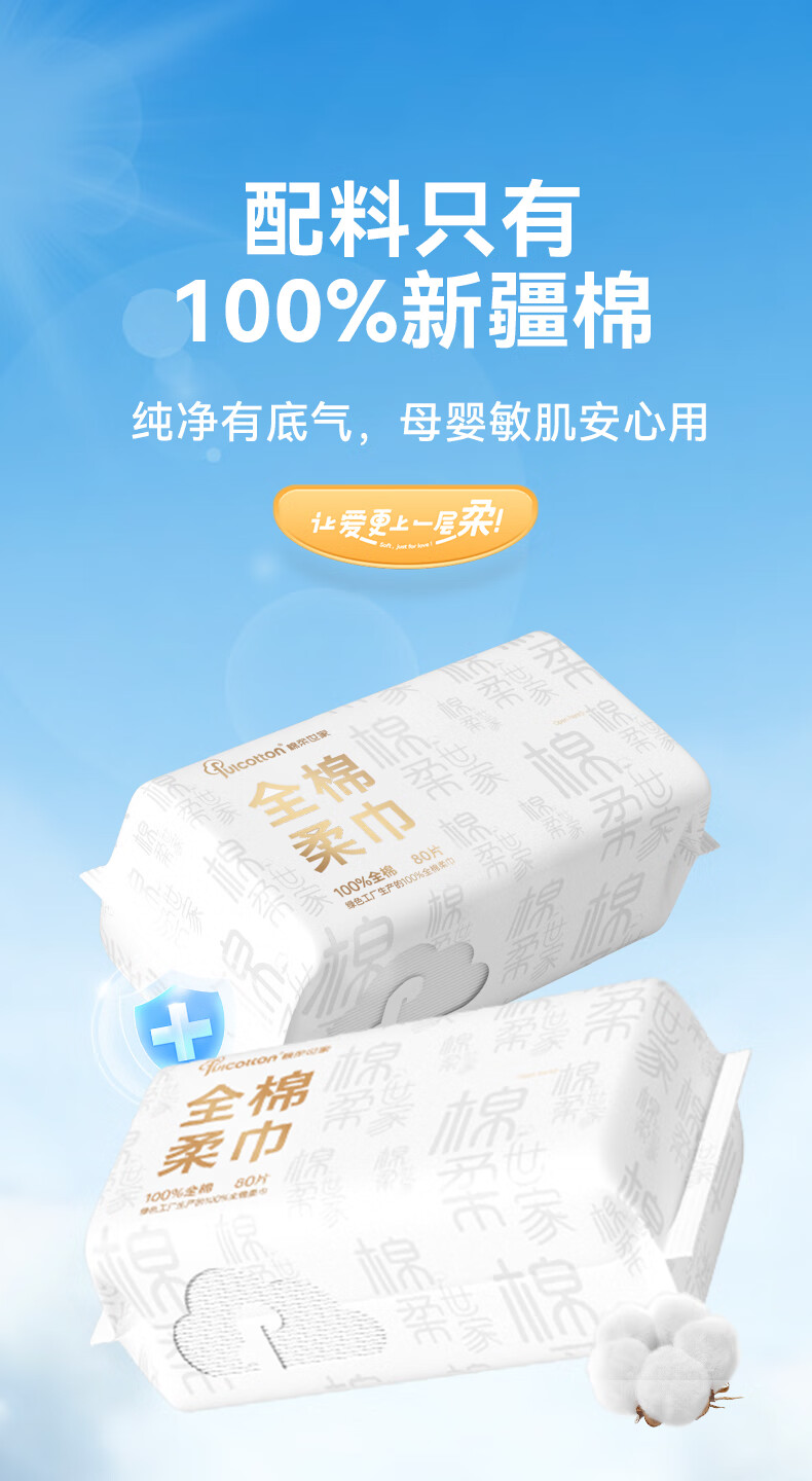 棉柔世家(FulCotton) 纯棉洗脸巾 MRJ01670A*4 80抽*4包 本白色(单位:组)