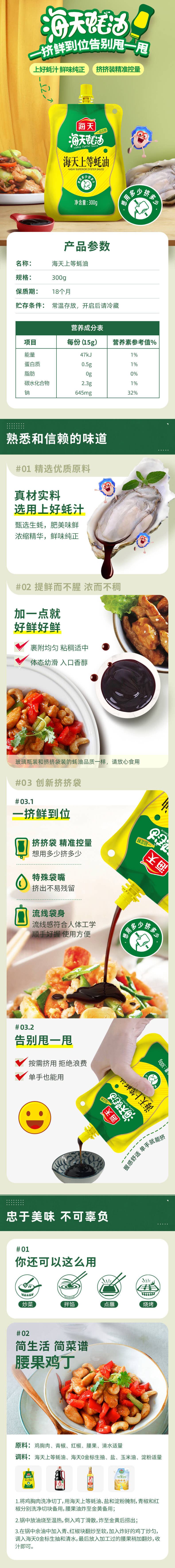 海天 调味 上等蚝油 300g 黄色(单位:袋)