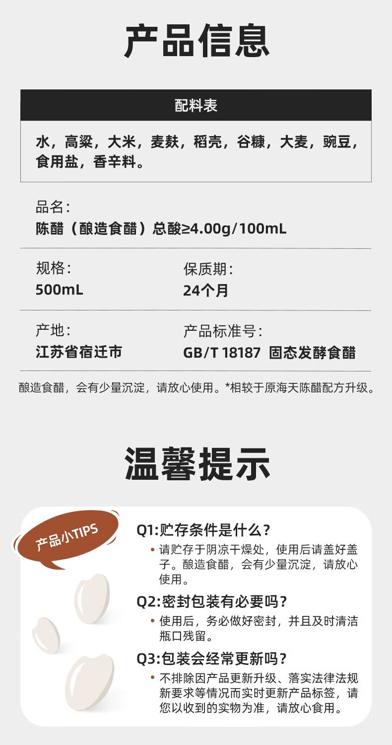 海天 调味 陈醋 500ml 黄色(单位:瓶)