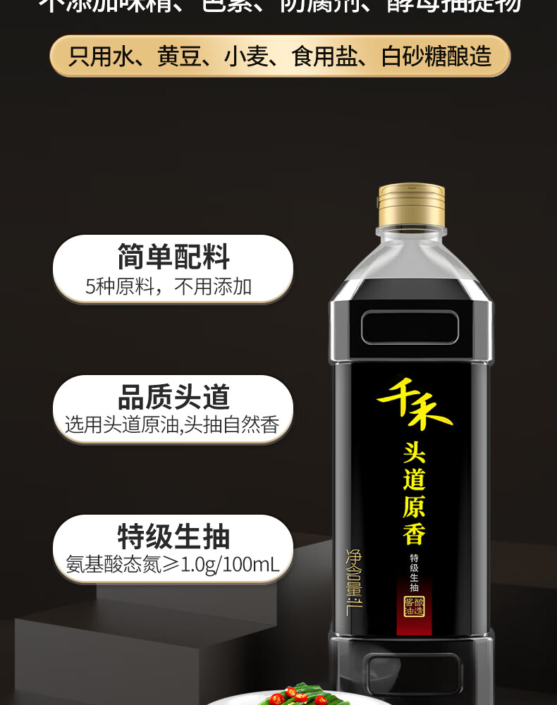千禾 酱油 头道原香特级生抽 1L 黑色(单位:瓶)