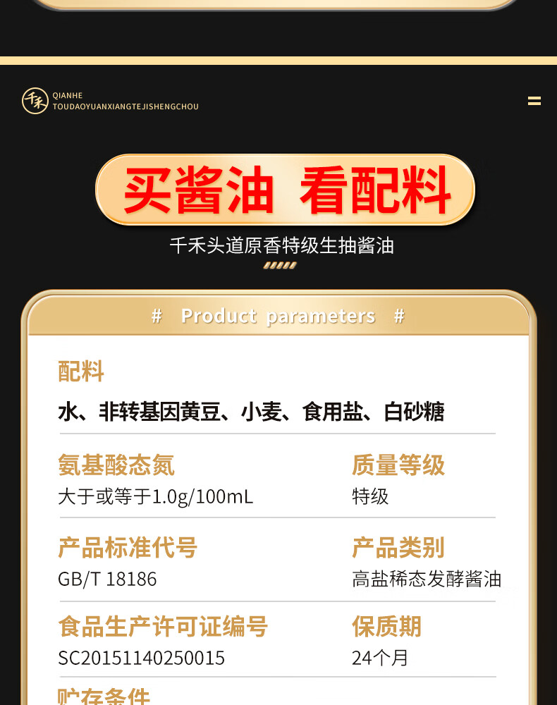 千禾 酱油 头道原香特级生抽 1L*2 黑色(单位:组)