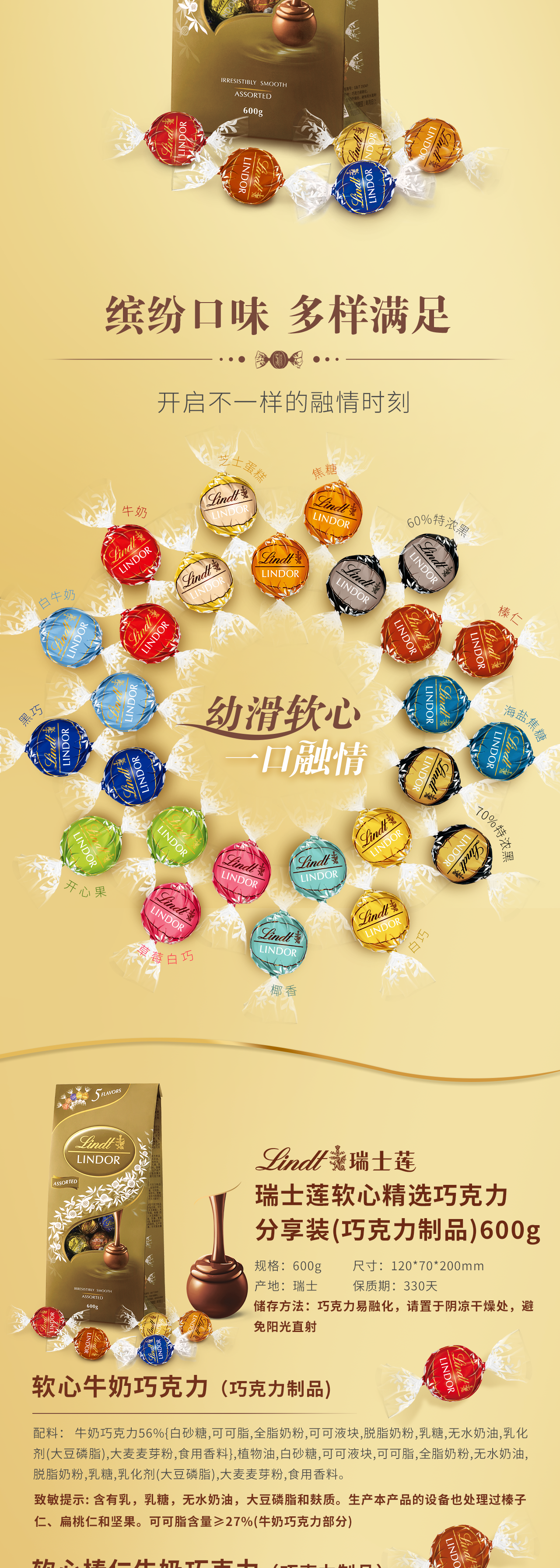 瑞士莲 软心精选巧克力 分享装 600g 奶茶杏(单位:袋)