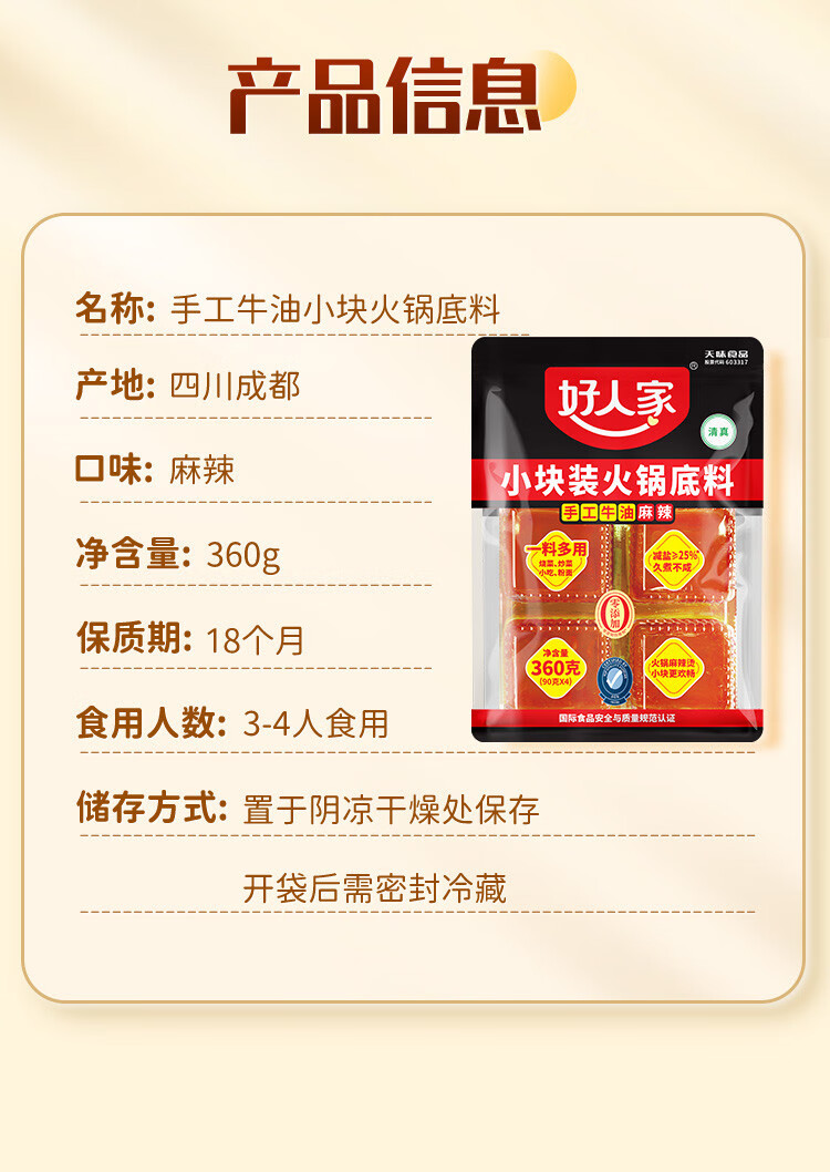 好人家 手工牛油火锅底料 手工牛油麻辣 360g*1袋 红色(单位:袋)