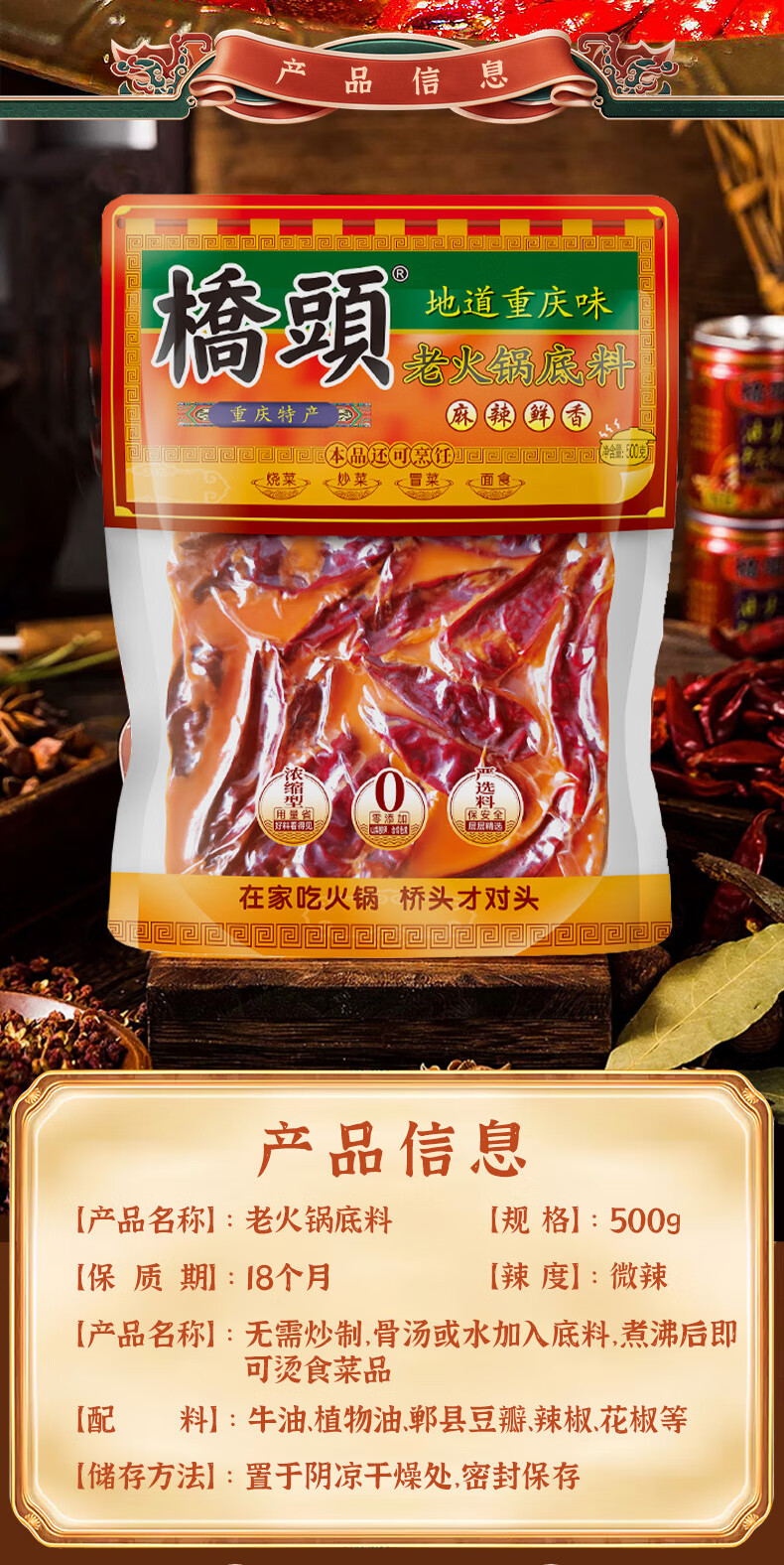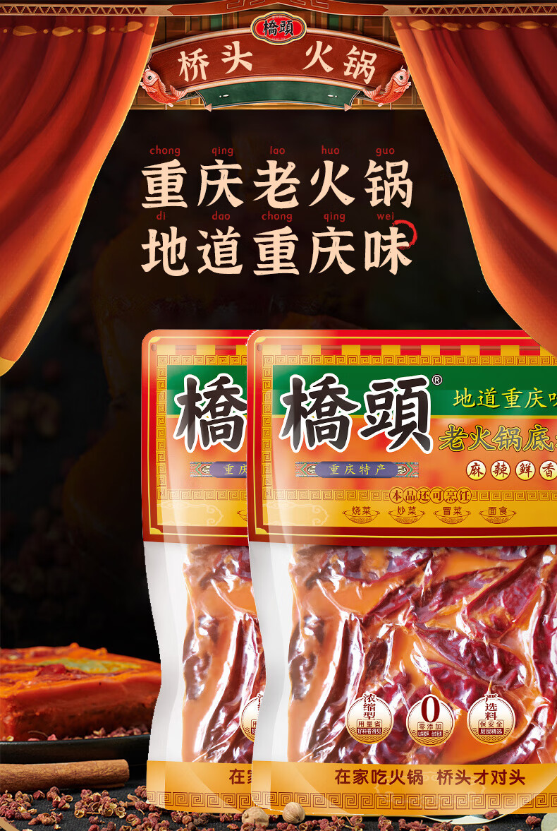桥头 老火锅底料 地道老火锅 500g*1袋 红色(单位:袋)