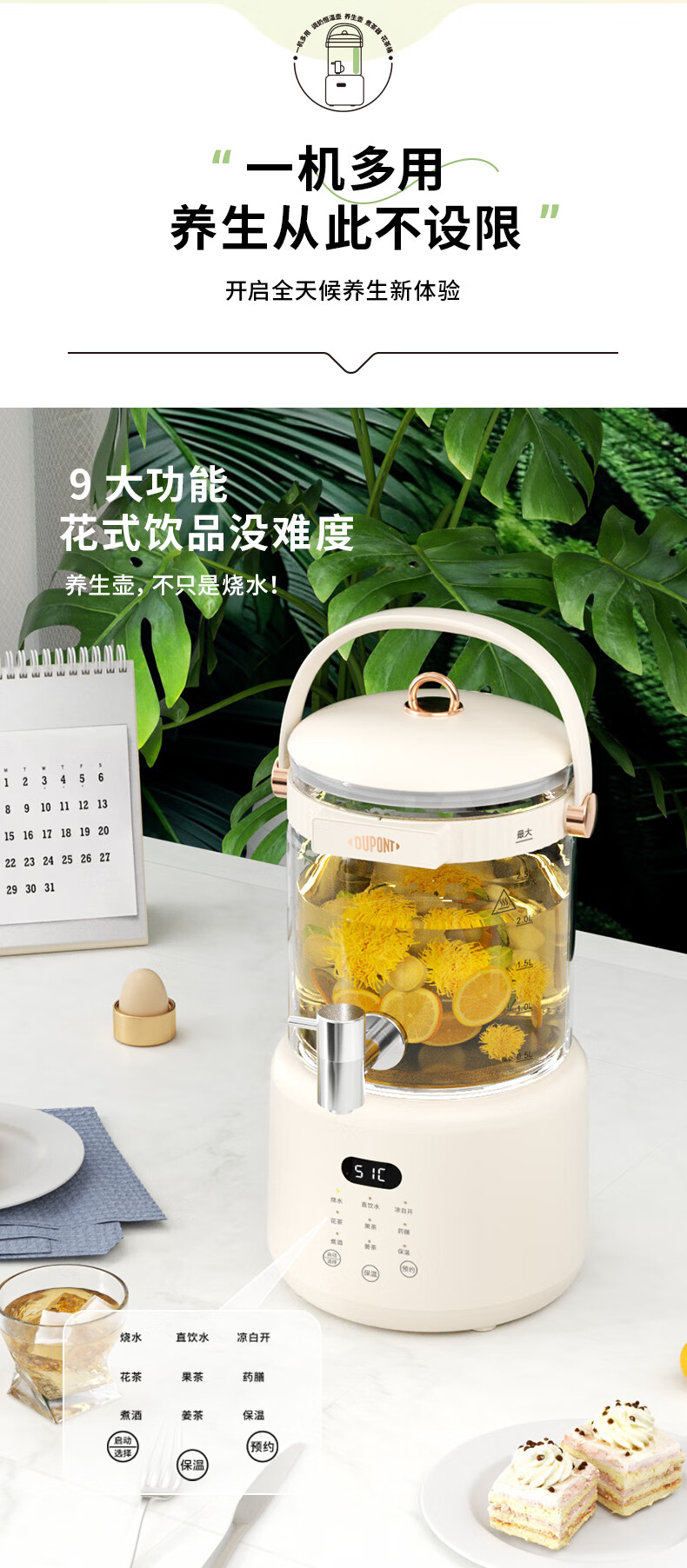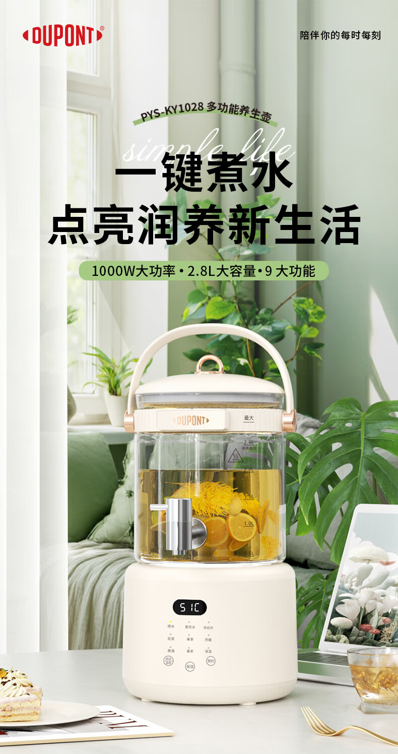 杜邦(DUPONT) 养生壶 PYS-KY1028 2.8L 白色(单位:台)