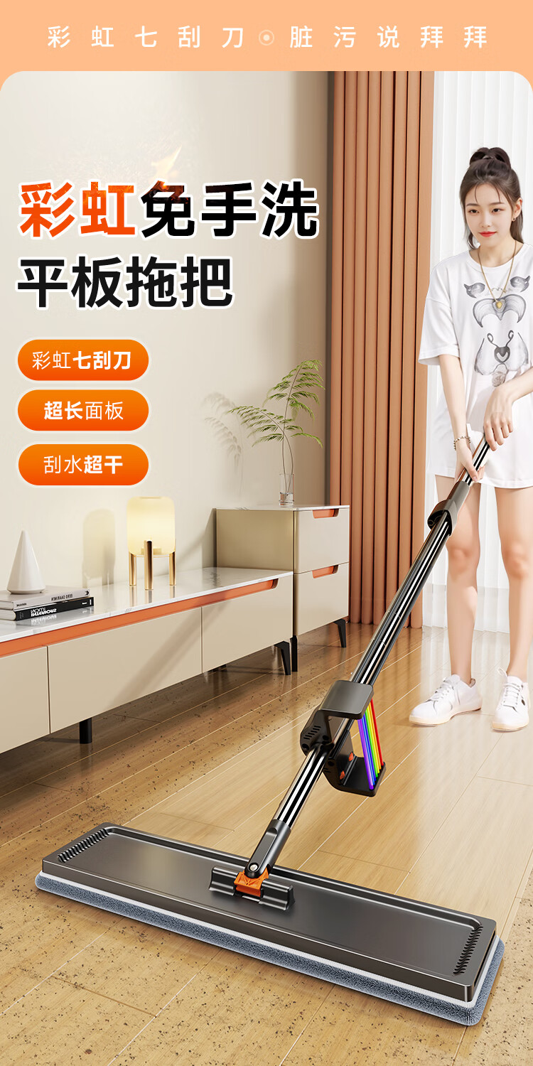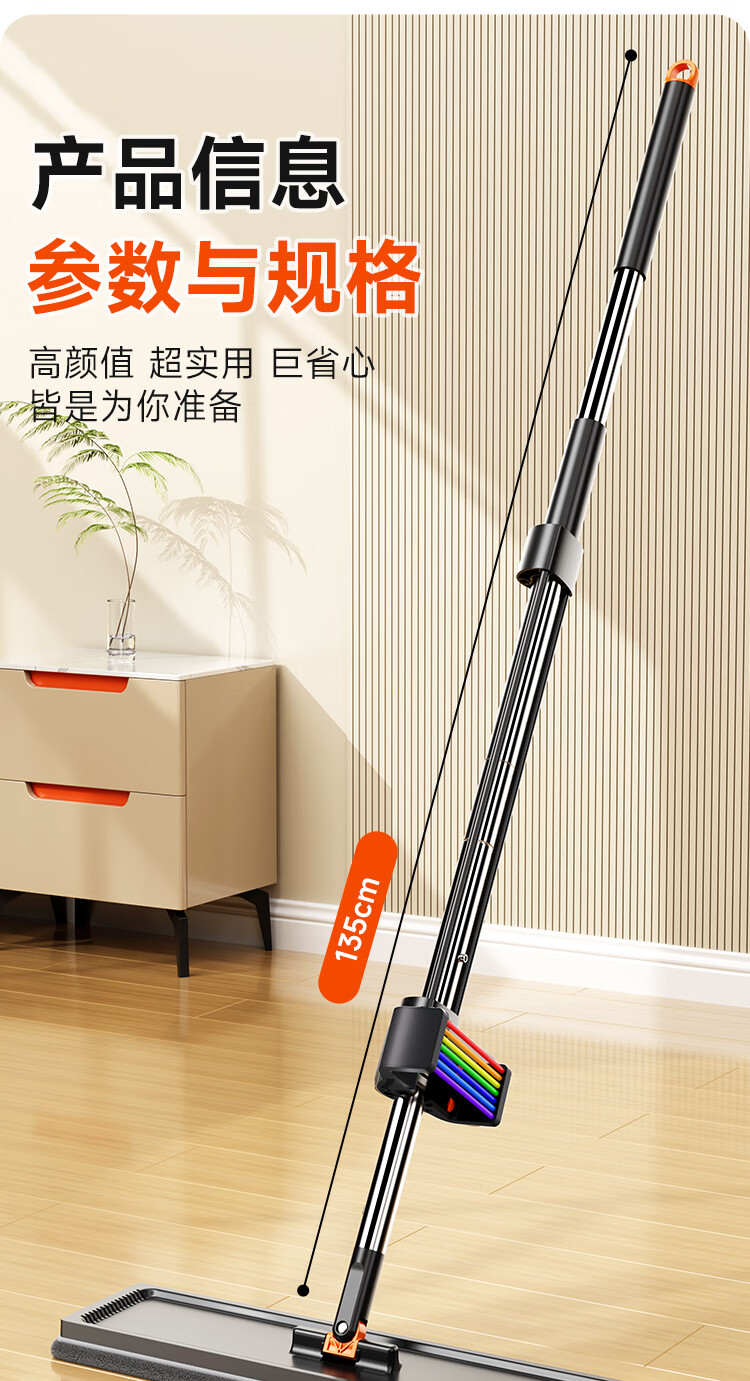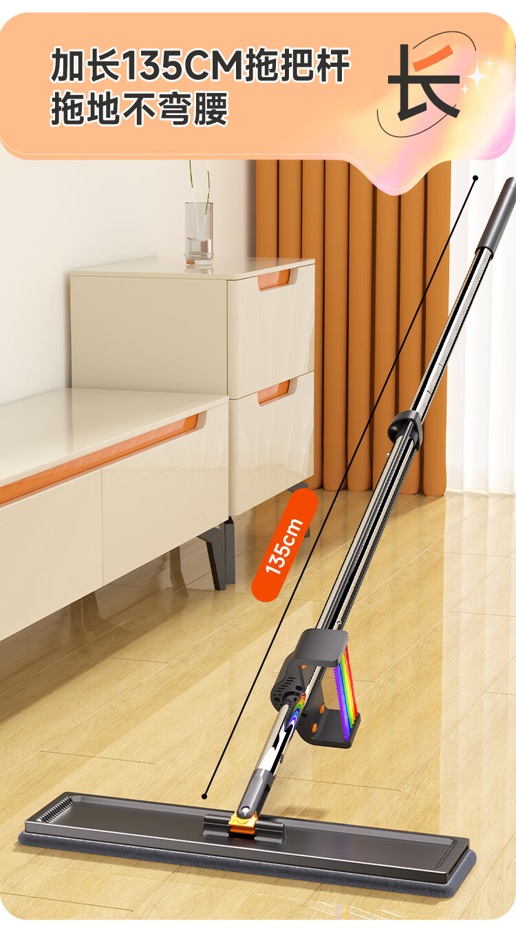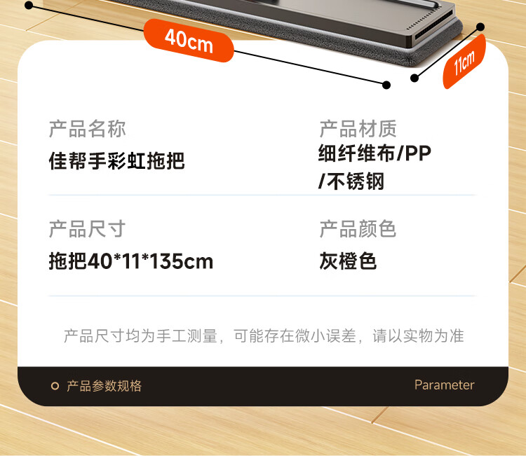 佳帮手 扫除道二代彩虹塑板免手洗平拖-2布 JBS-PBTB-CHJ140-GOG2P 40cm 灰橙色(单位:个)