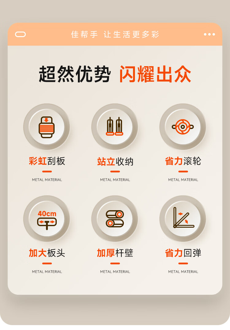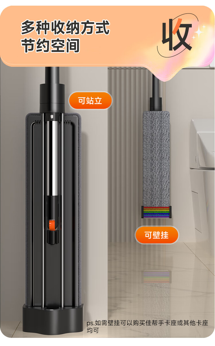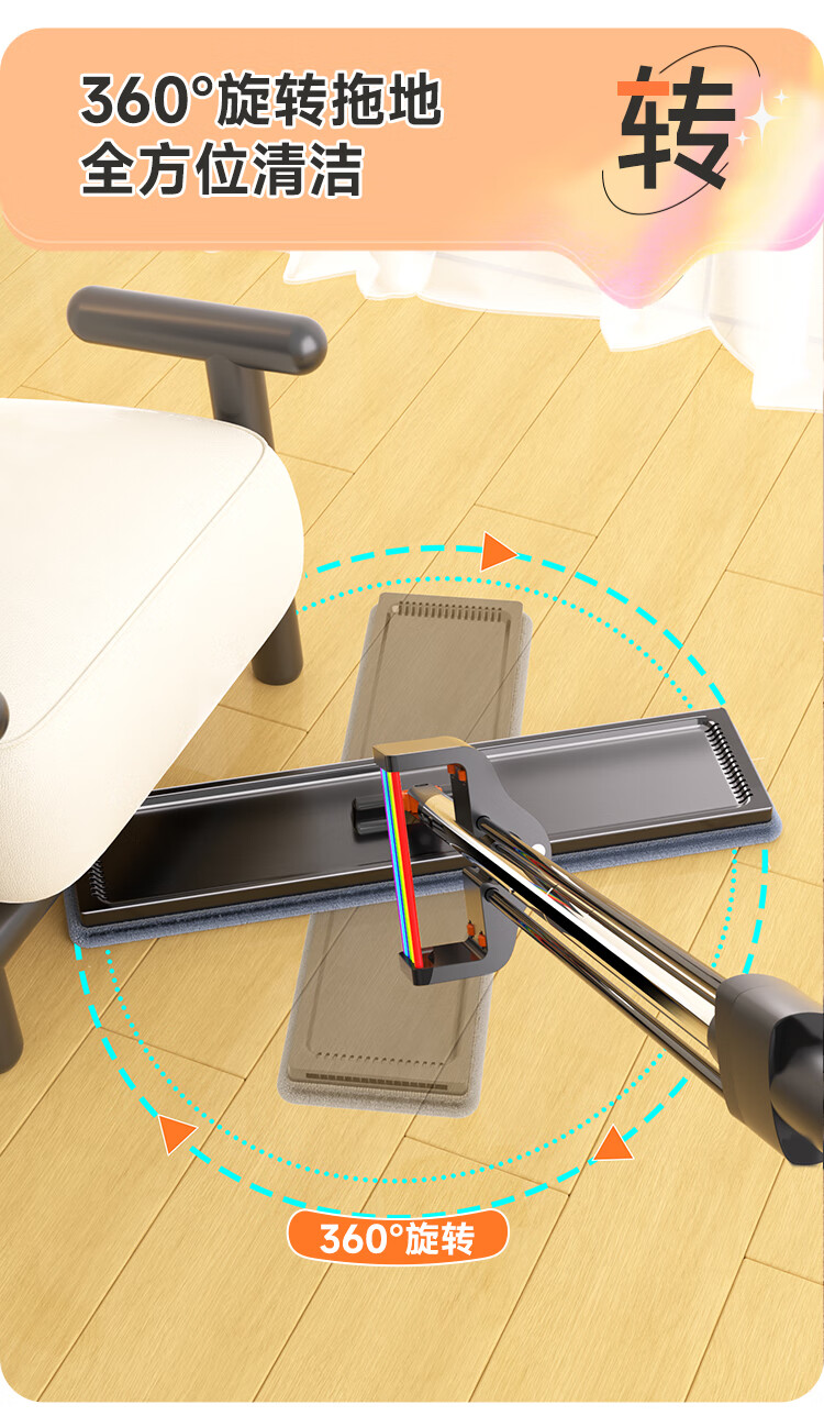 佳帮手 扫除道二代彩虹塑板免手洗平拖-2布 JBS-PBTB-CHJ140-GOG2P 40cm 灰橙色(单位:个)