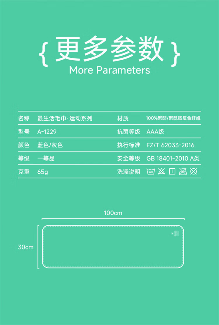 最生活 毛巾. 运动系列 A-1229 30*100cm/65g 蓝色(单位:条)