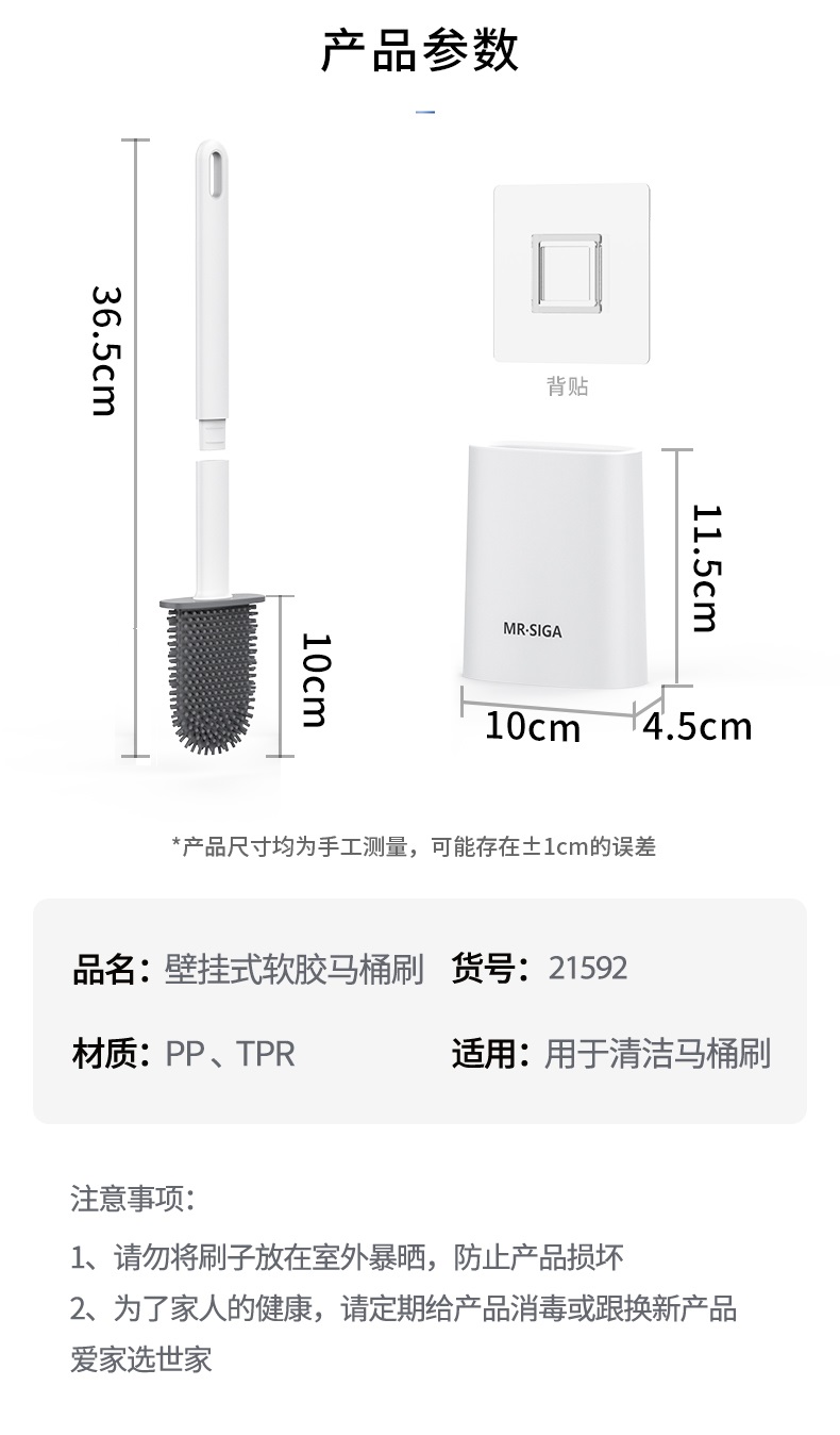 世家 壁挂式软胶马桶刷 21592 36.5*10*4.5cm 白色(单位:套)