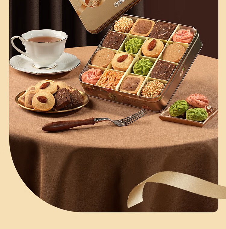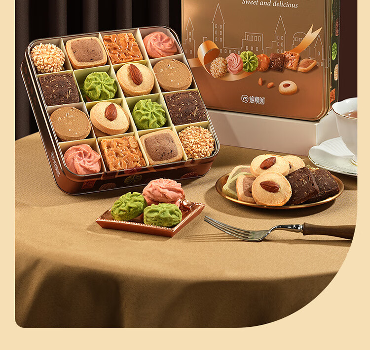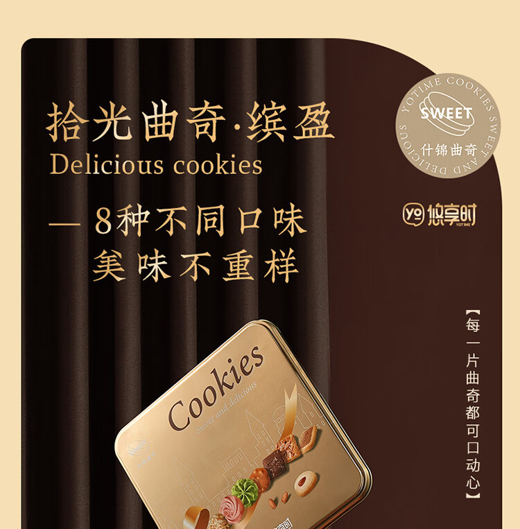 悠享时(YOTIME) 黄油什锦曲奇饼干礼盒 缤盈 300g 香槟色(单位:盒)