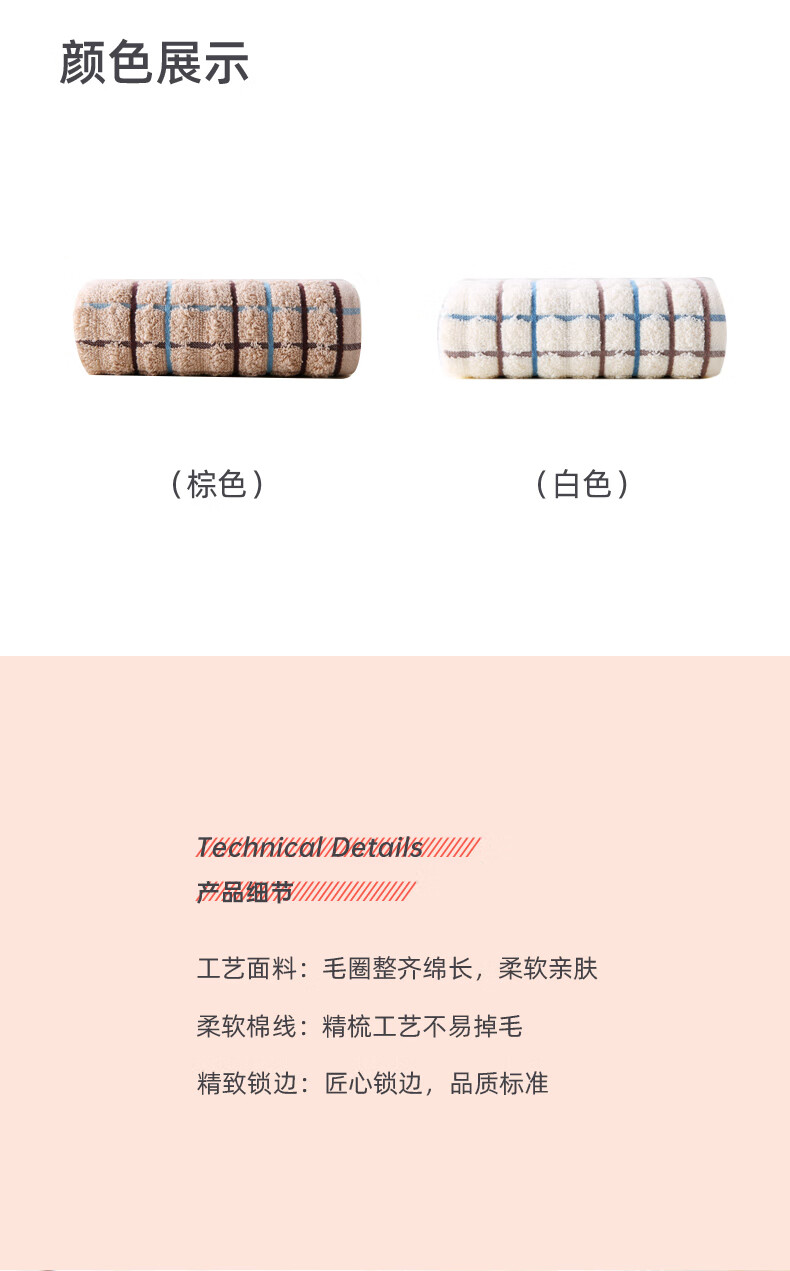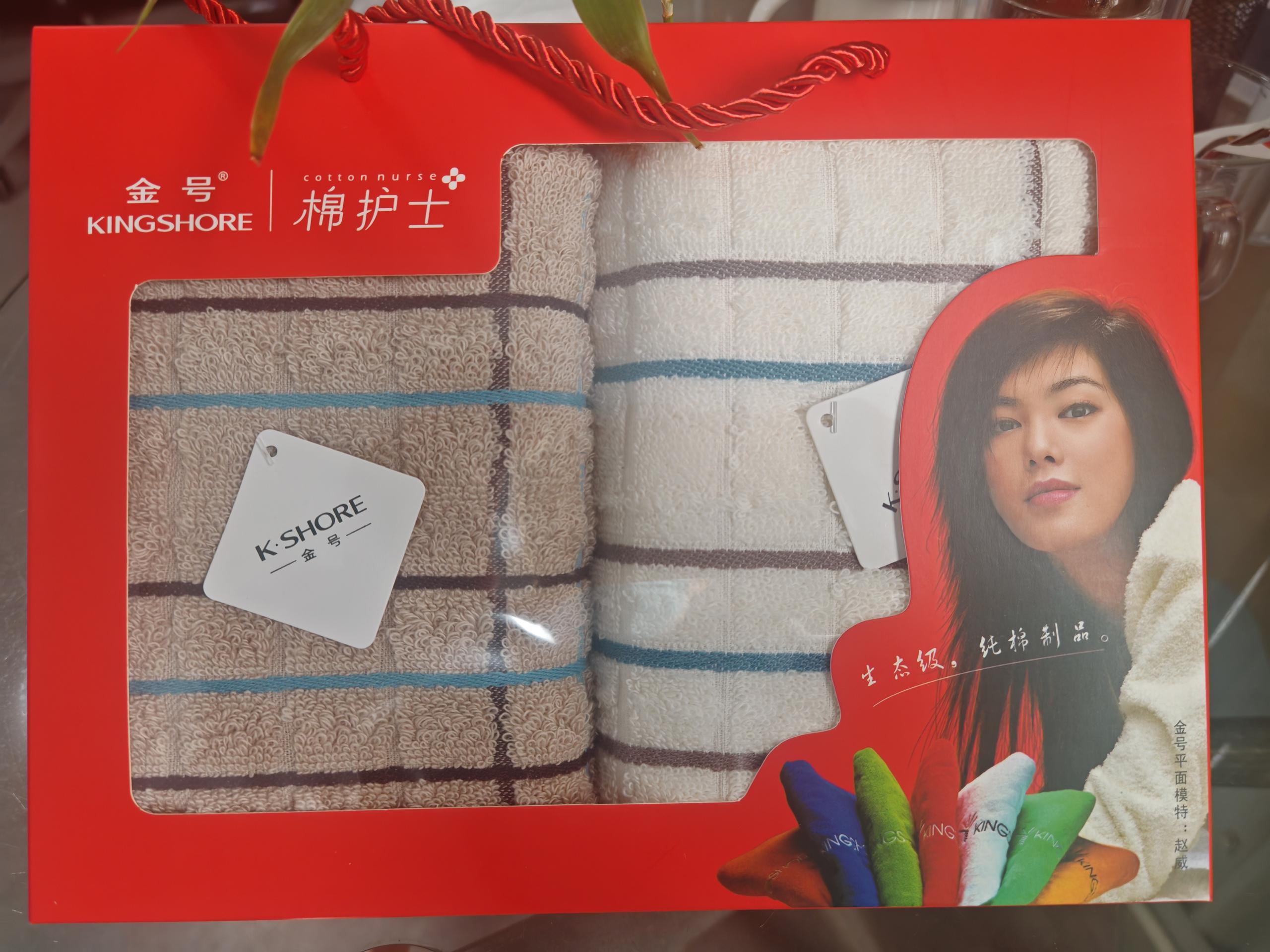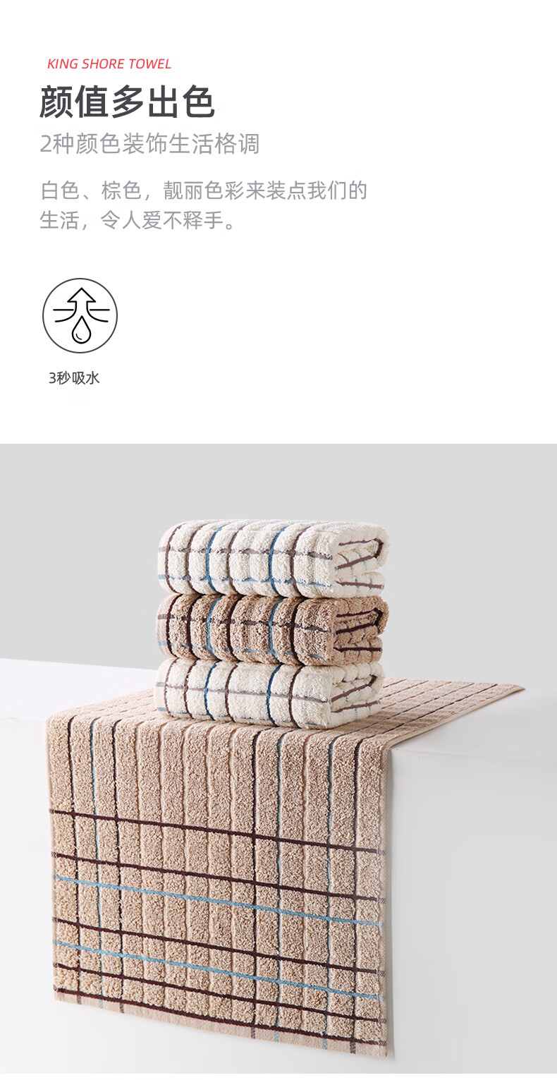 金号(KING SHORE) 纯棉吸水毛巾白棕双条礼盒装 GA1016 70cm*34cm 混色(单位:盒)