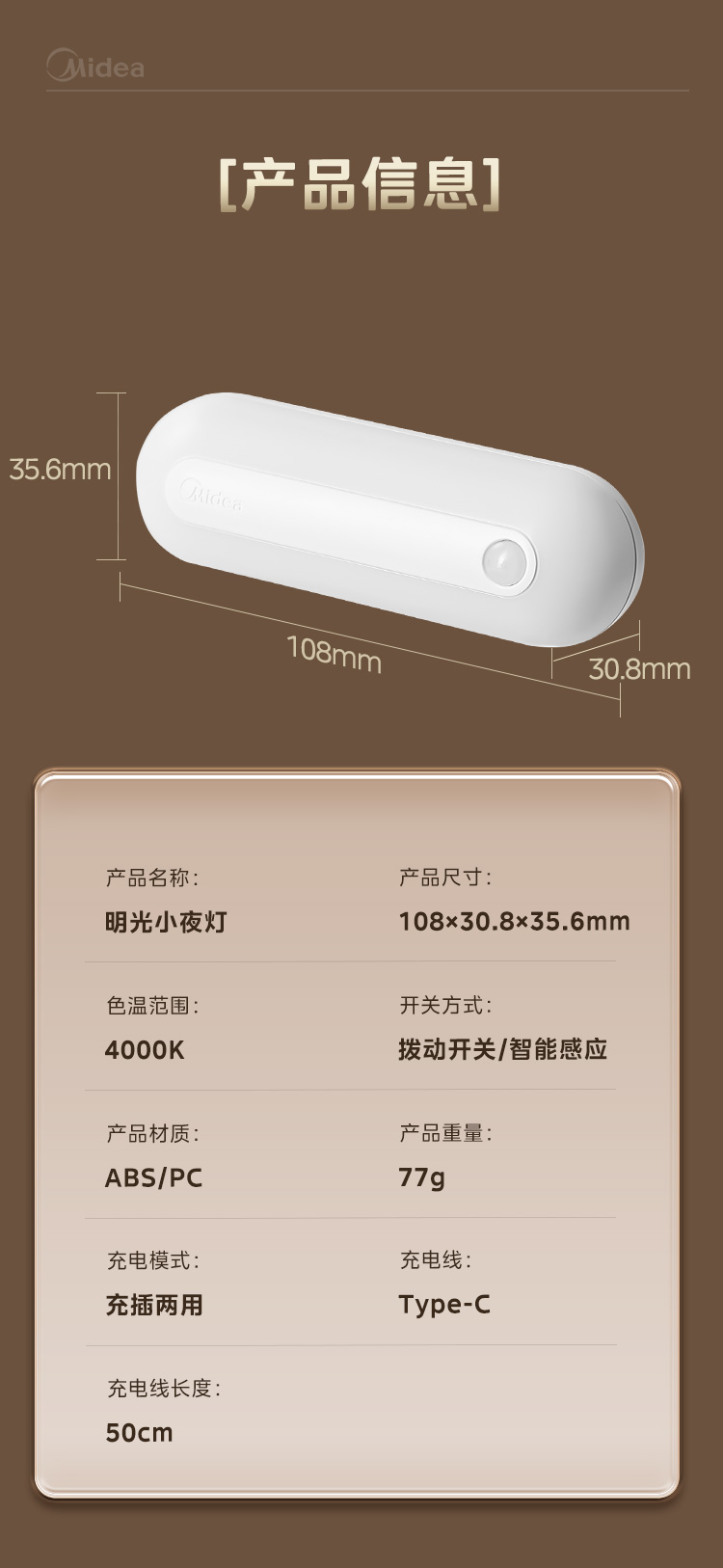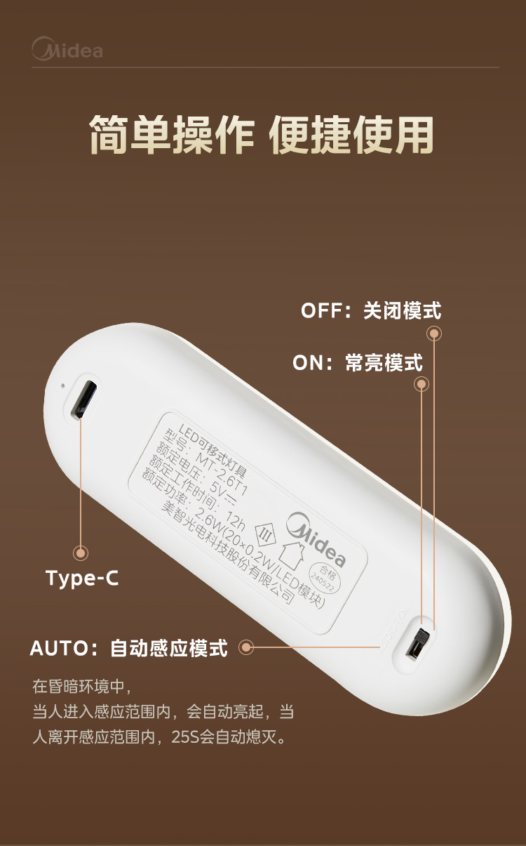 美的(Midea) 充电明光 MT-2.6T1 功率:2.6W 白色(单位:个)