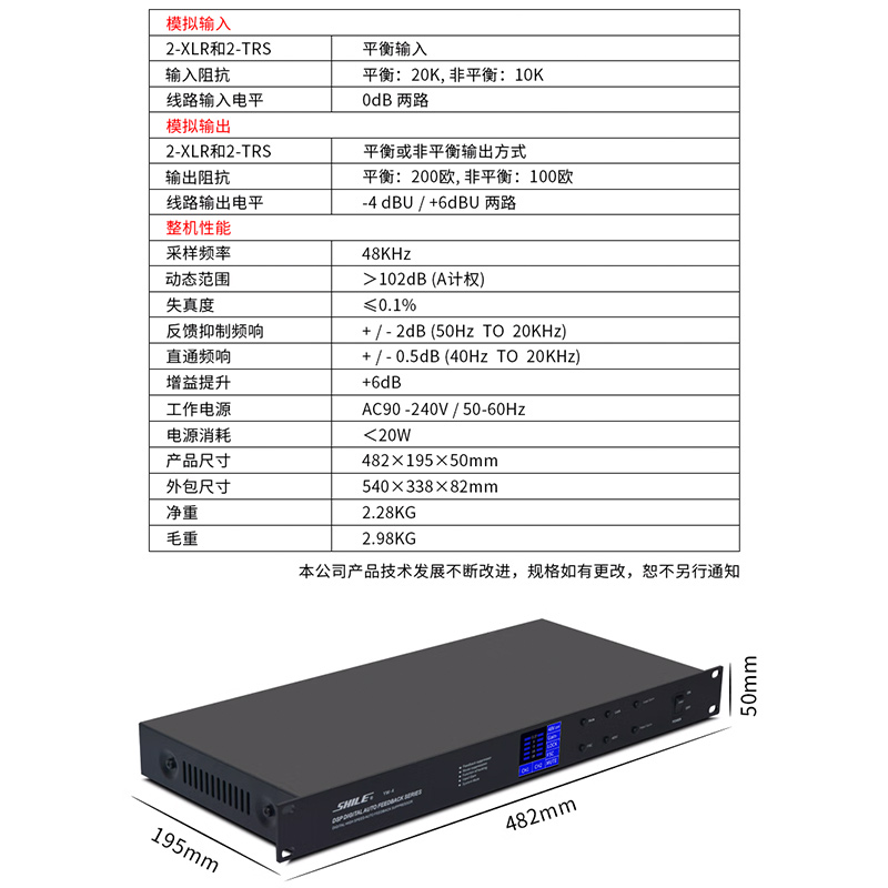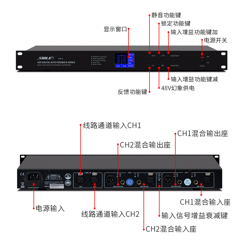 狮乐 (SHILE) 专业会议室全自动免调试反馈抑制器 YW-4 2.28KG 曜石黑(单位:台)