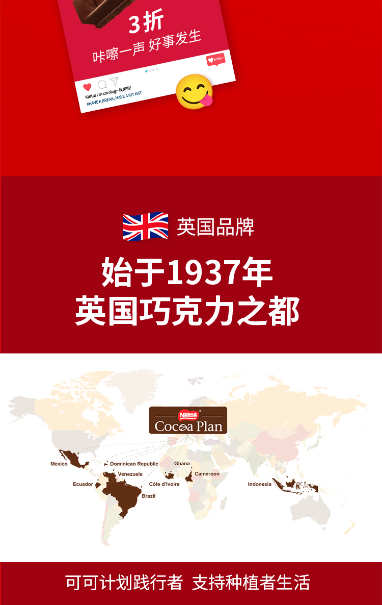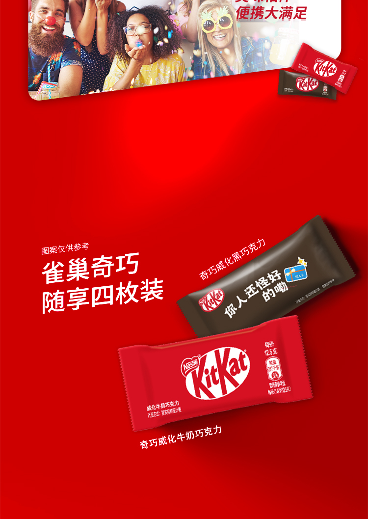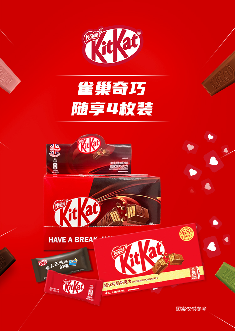 雀巢奇巧(Nestle Kitkat) 威化黑巧克力 随享 4枚装*8小盒 红色(单位:组)