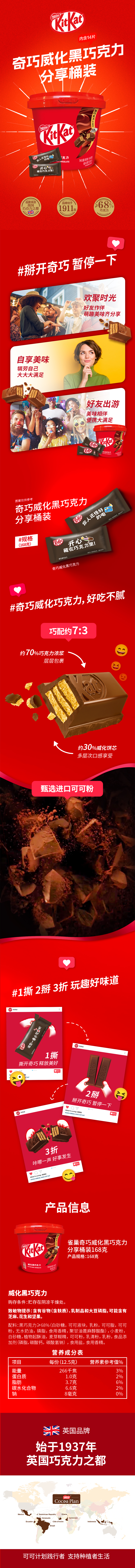 雀巢奇巧(Nestle Kitkat) 威化黑巧克力 分享桶装 168克 红色(单位:桶)