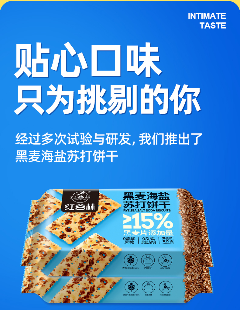 红谷林 苏打饼干 黑麦海盐+奇亚籽 208g*4袋 混色(单位:组)