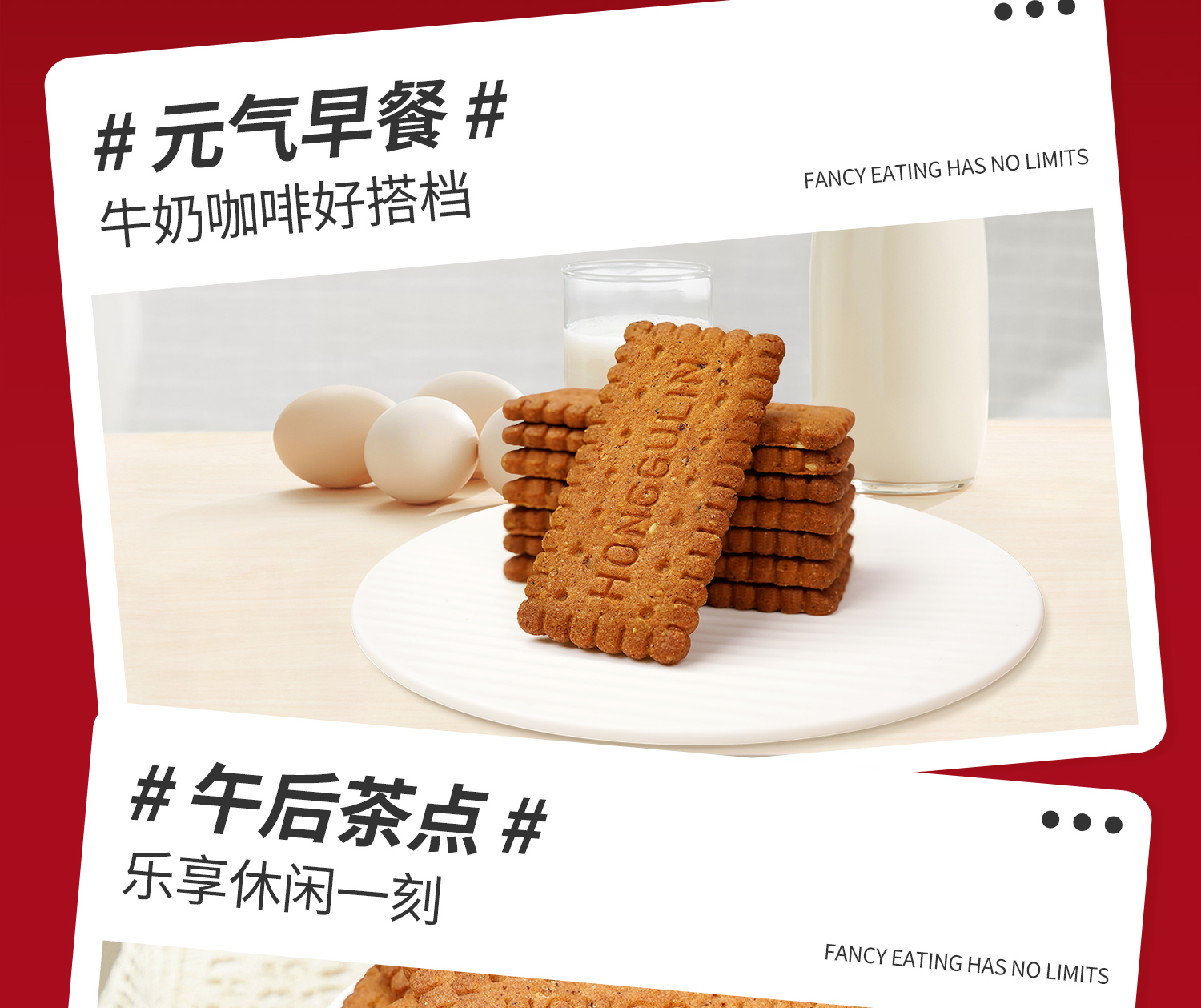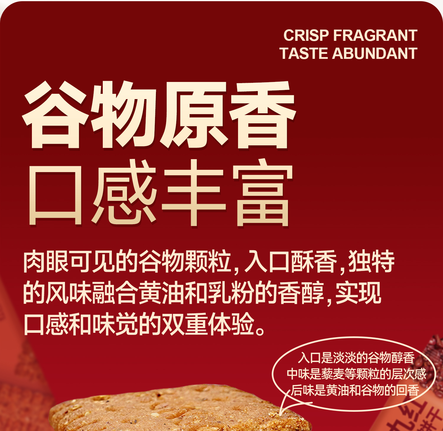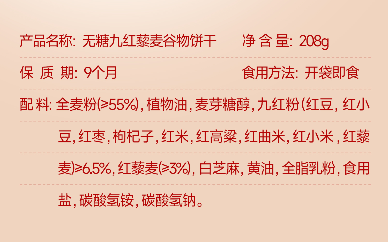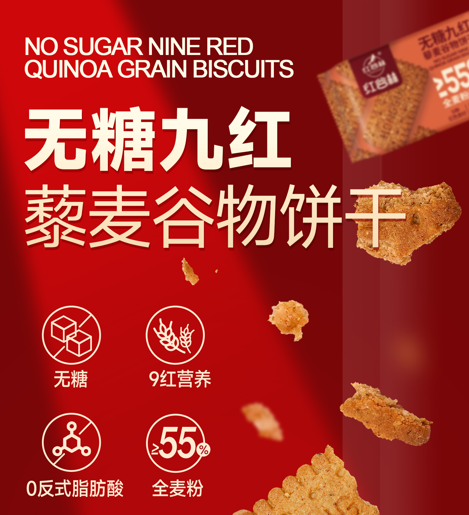 红谷林 无糖全麦早餐粗粮藜麦谷物饼干 9红 208g*3袋 红色(单位:组)