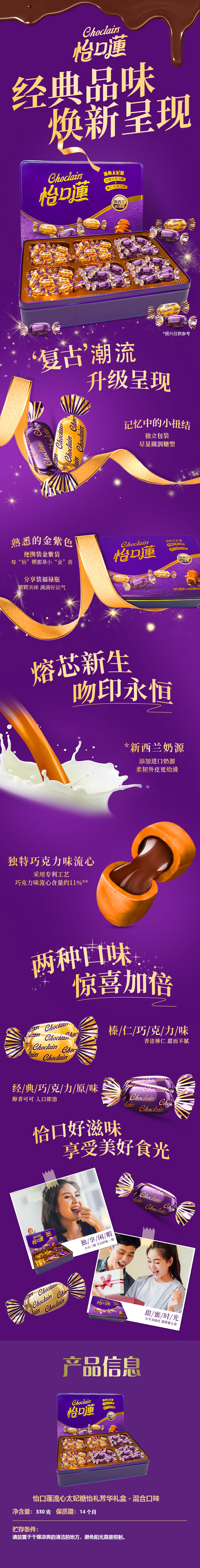 怡口莲/Cadbury 流心太妃糖怡礼芳华礼盒 混合口味 330g 紫色(单位:盒)