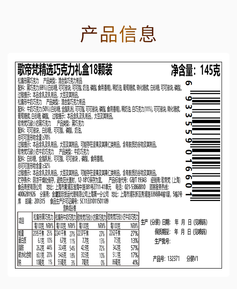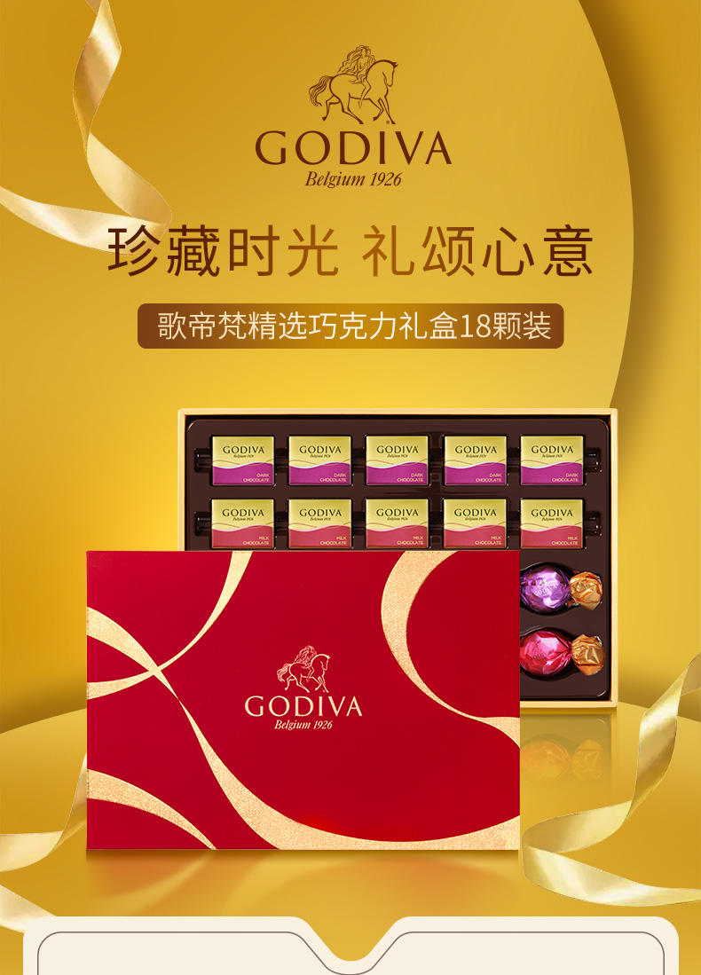 歌帝梵(Godiva) 精选巧克力礼盒18颗装 168 145g 枫叶色(单位:盒)