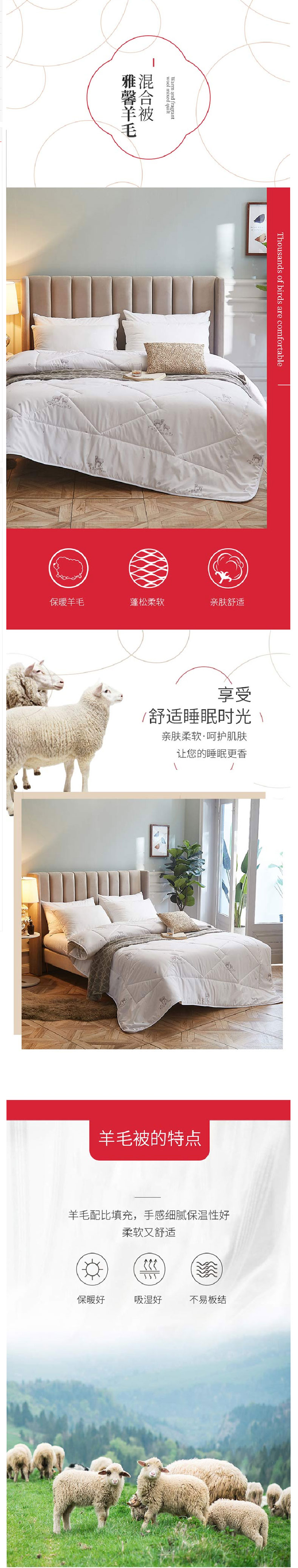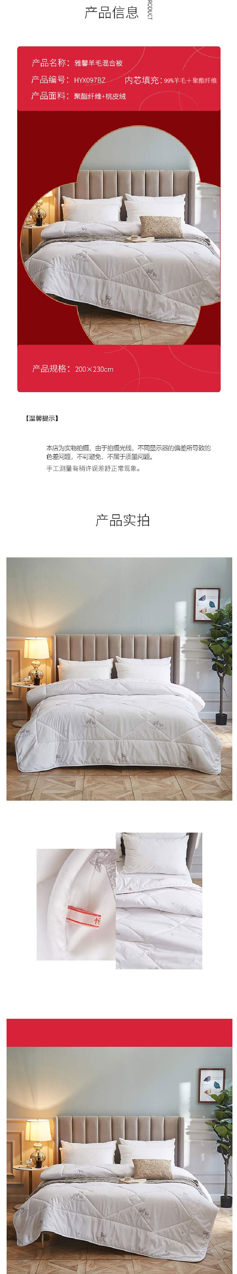 恒源祥雅馨羊毛混合被HYX097BZ200*230cm(单位:床)白色 白色
