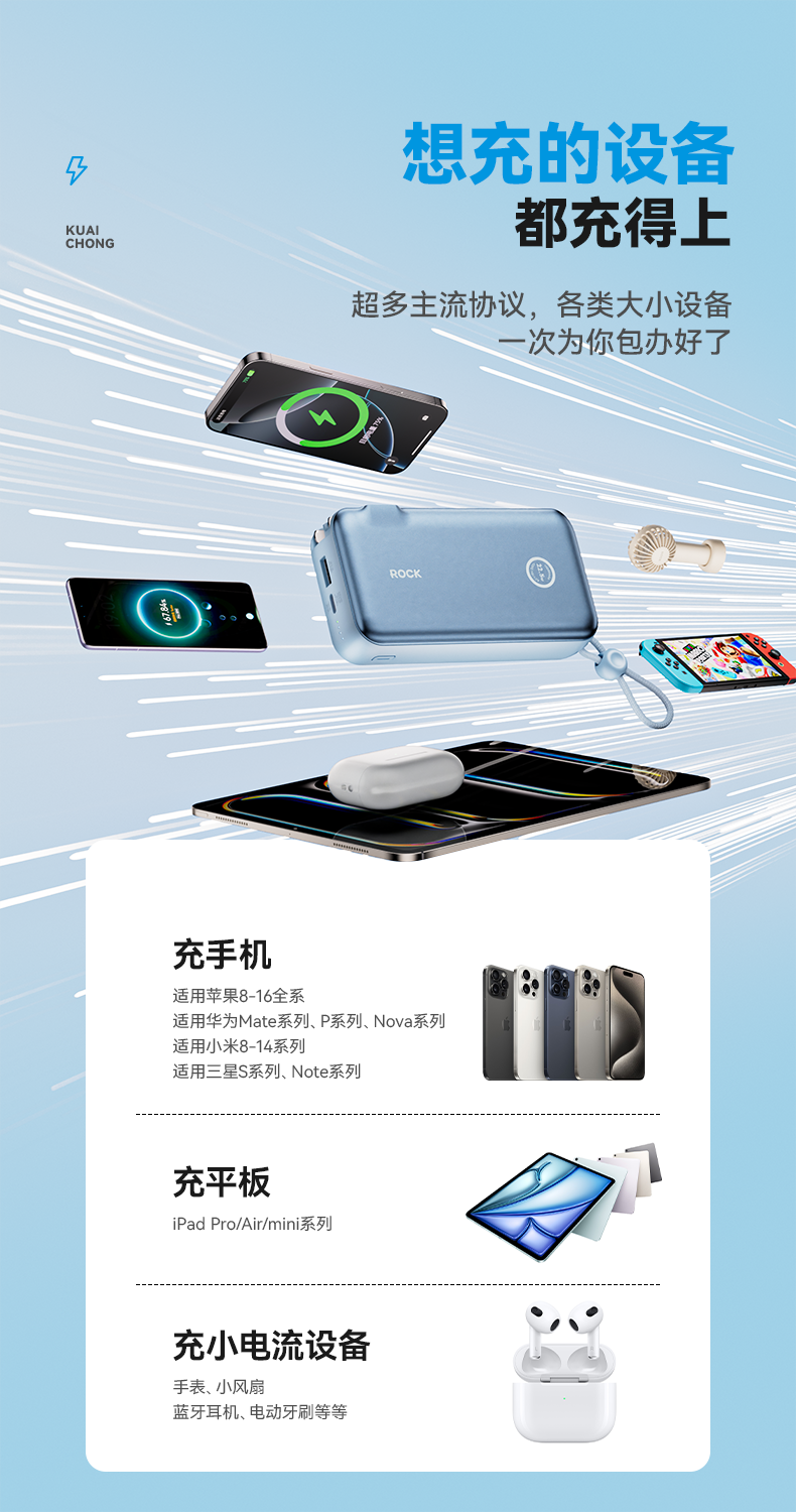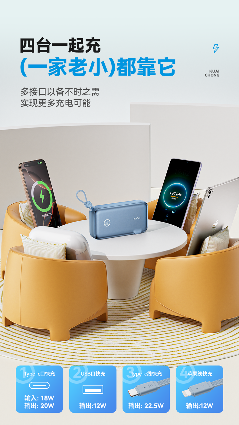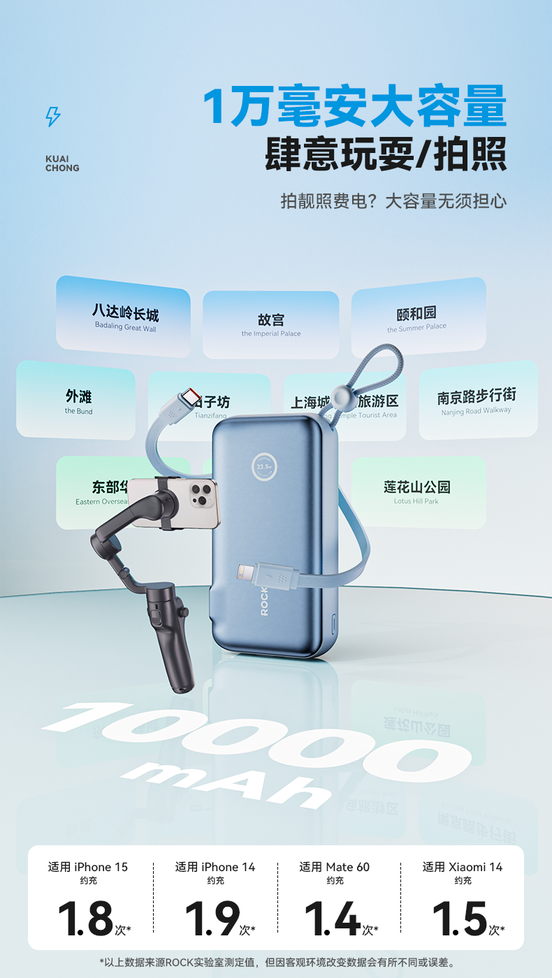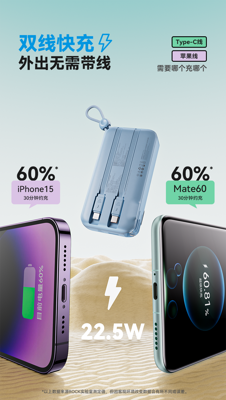 洛克(ROCK) 自带插头 双线22.5W 移动电源适配器 RCY0030 10000mAh 蓝色(单位:个)