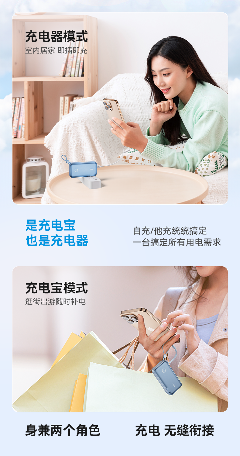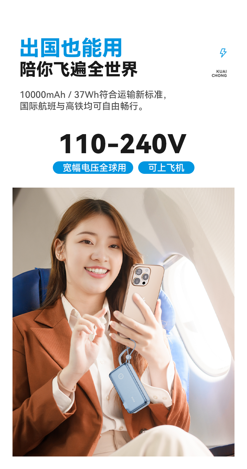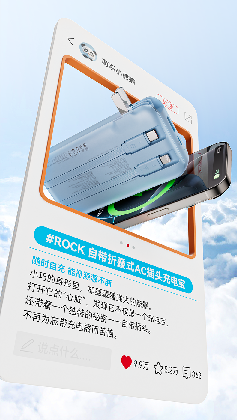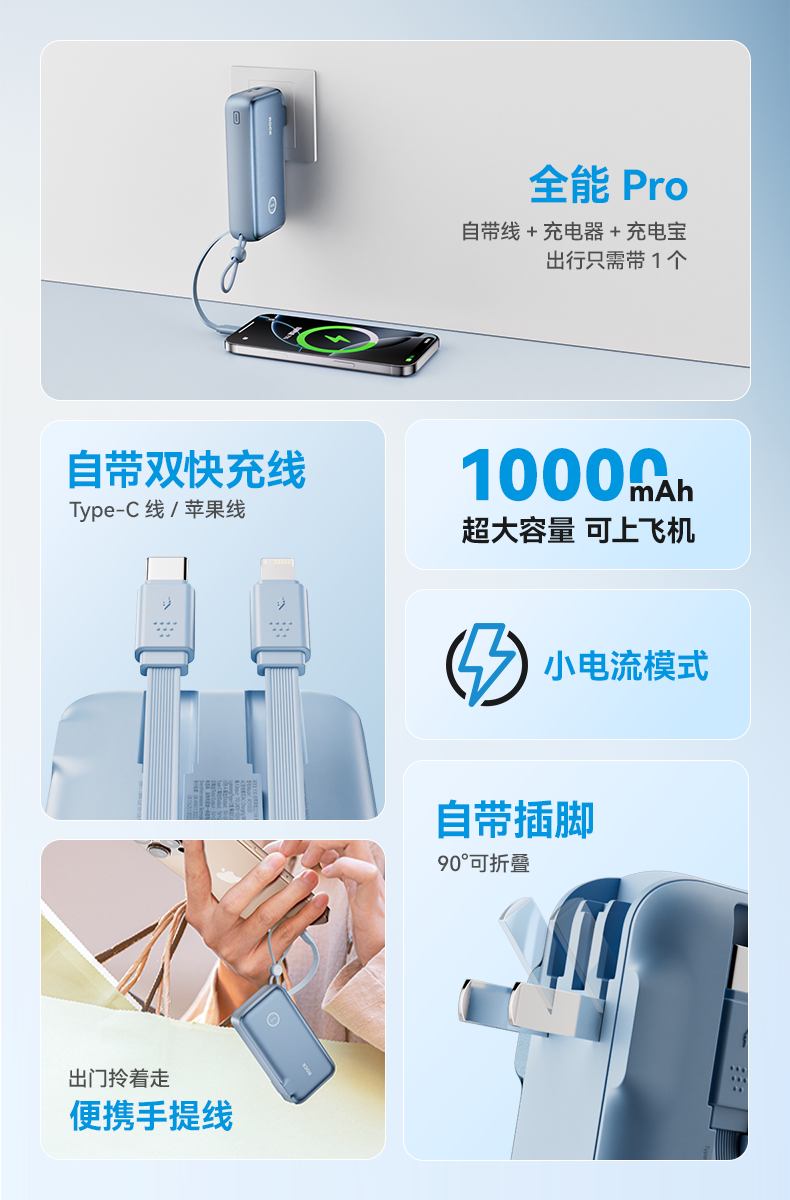 洛克(ROCK) 自带插头 双线22.5W 移动电源适配器 RCY0030 10000mAh 蓝色(单位:个)