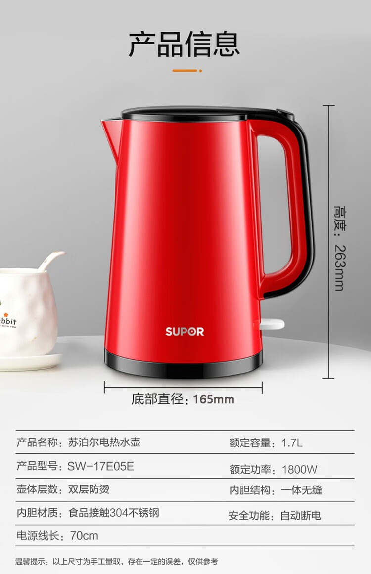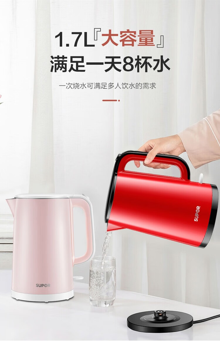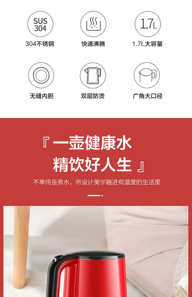 苏泊尔(SUPOR) 电水壶 SW-17E05E 1.7L 红色(单位:个)