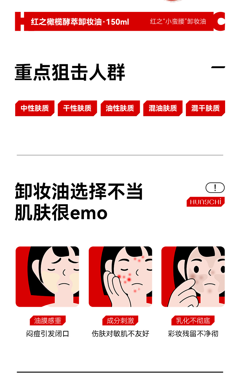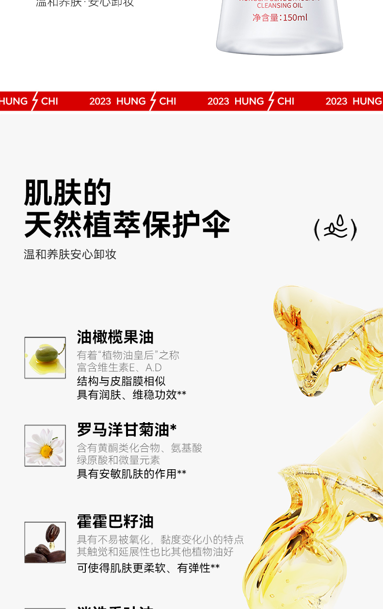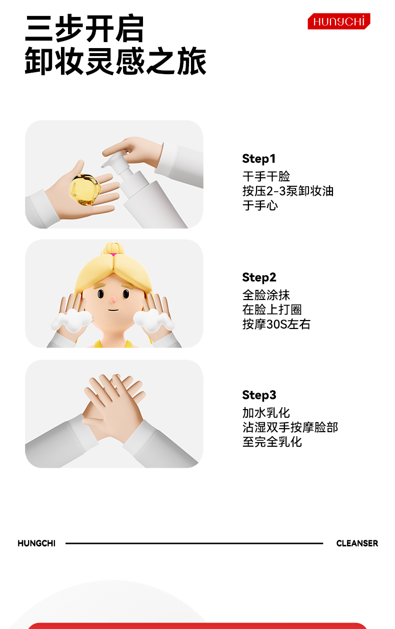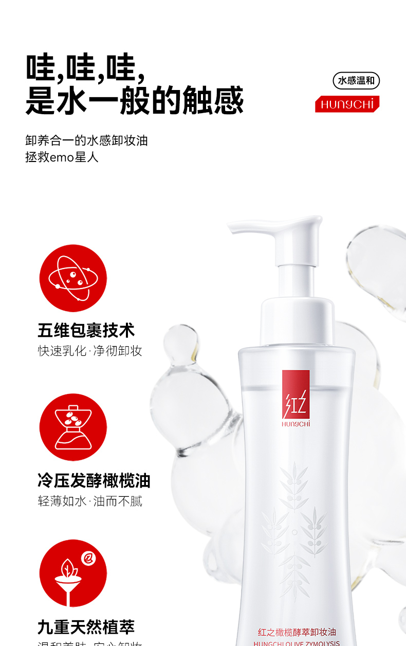 HUNGCHI 红之 橄榄酵萃卸妆油 第二代(泵头)-小蛮腰Pro 150ml 白色(单位:瓶)
