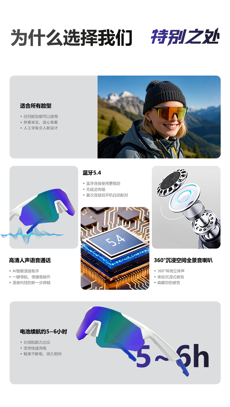 塞尔兰斯/SAYRELANCES Ai智能音乐眼镜 SD-12 蓝牙5.4 紫色(单位:个)