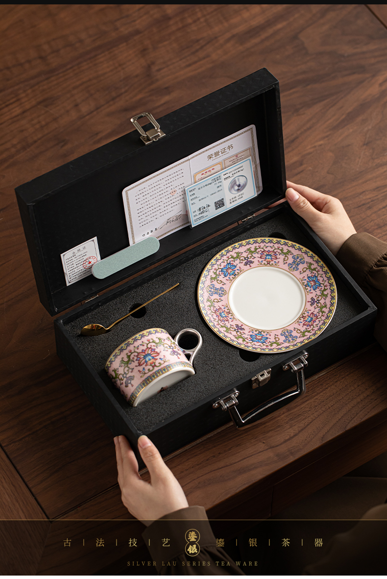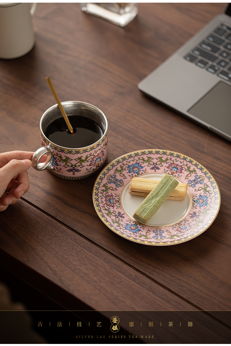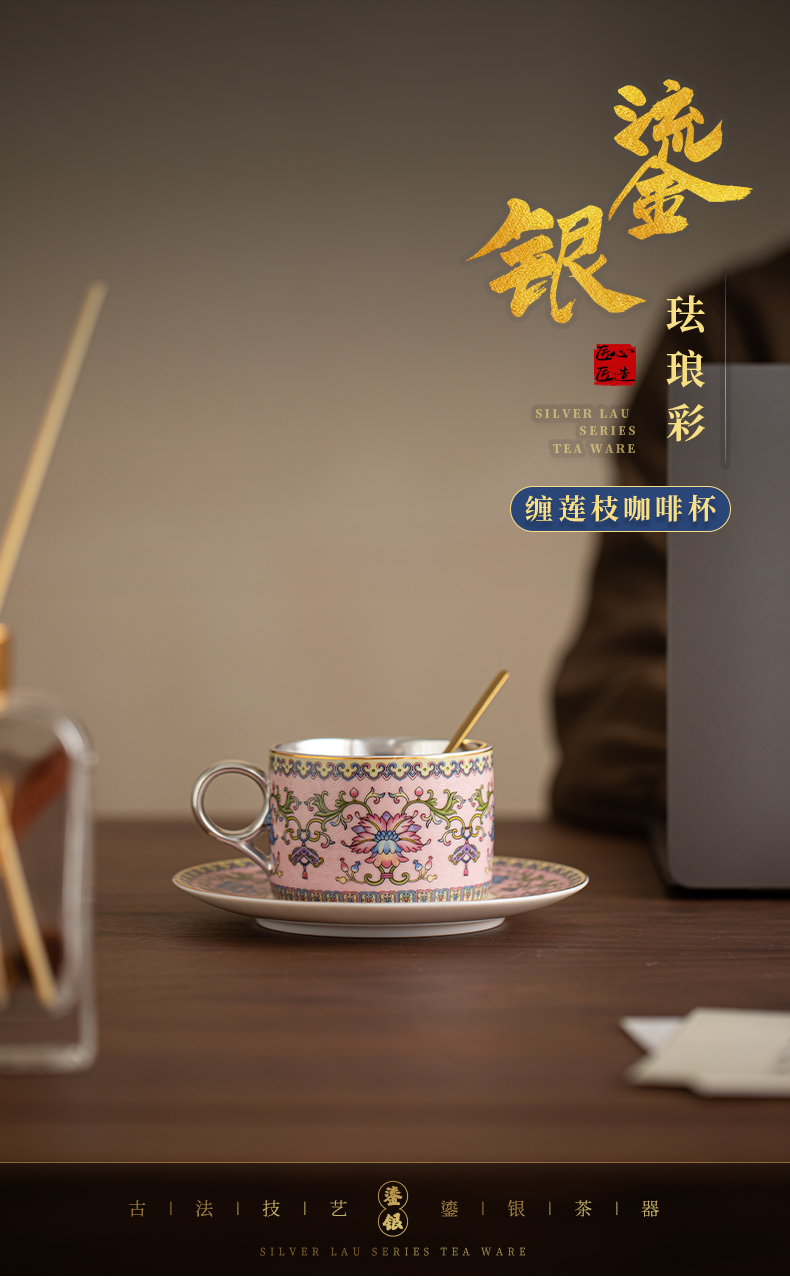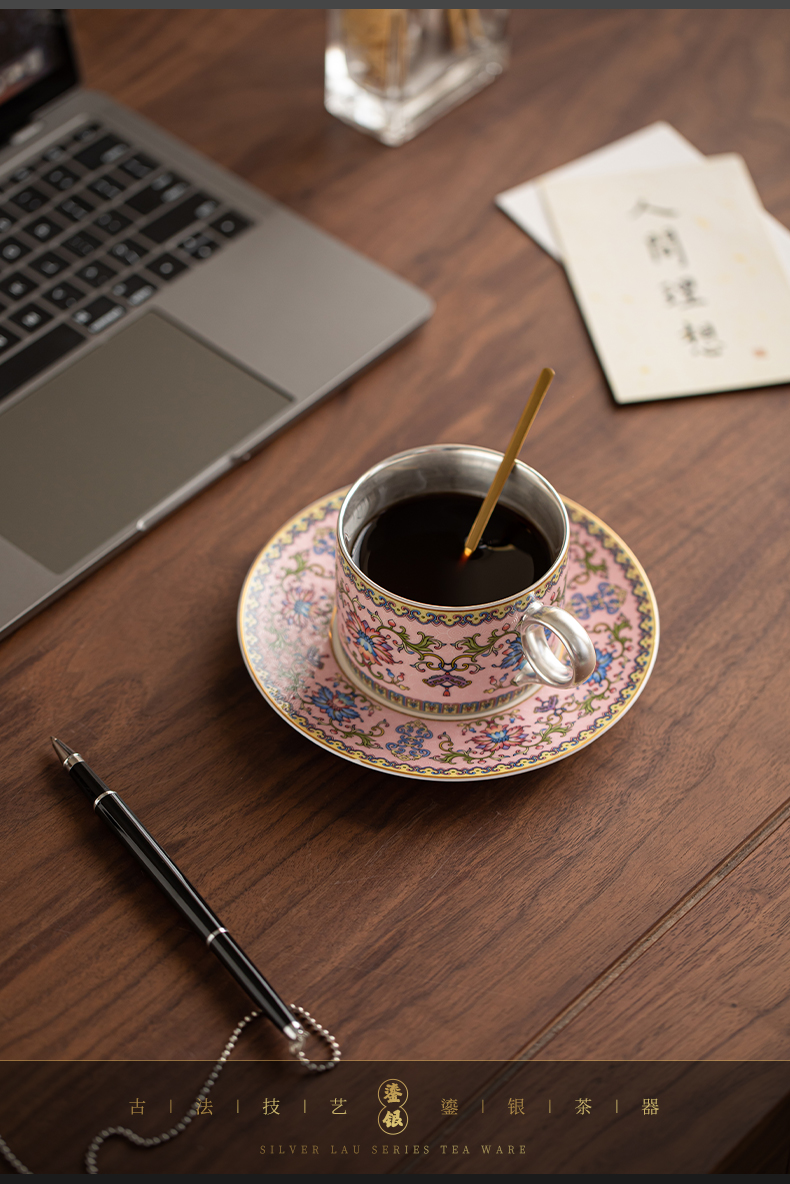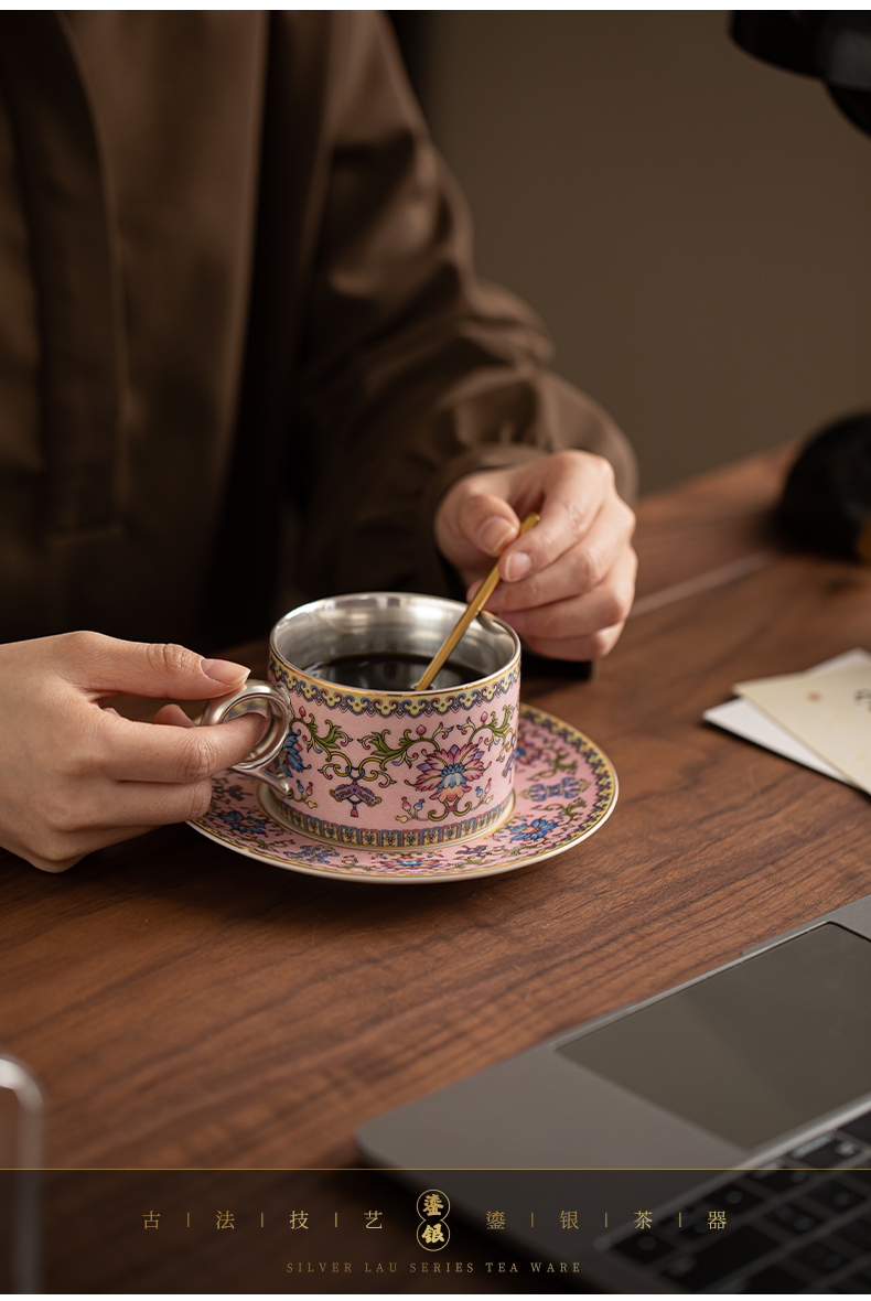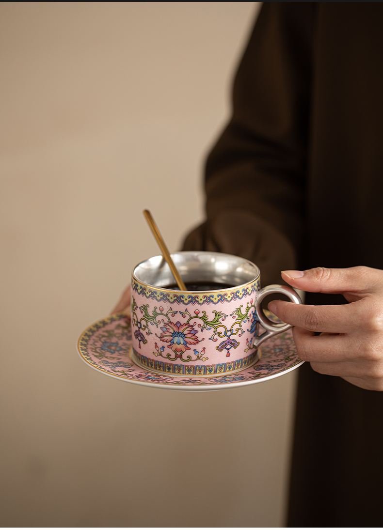 苏氏陶瓷(SUSHI CERAMICS) 鎏银缠枝莲咖啡杯粉 J1173 250ml 粉色(单位:个)