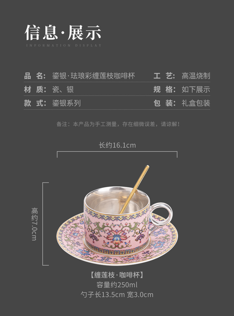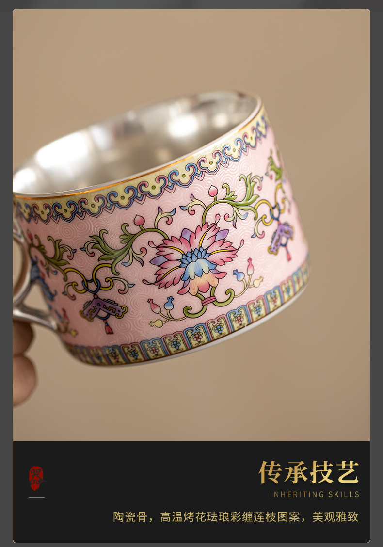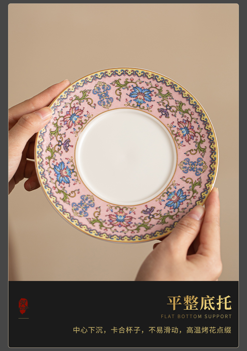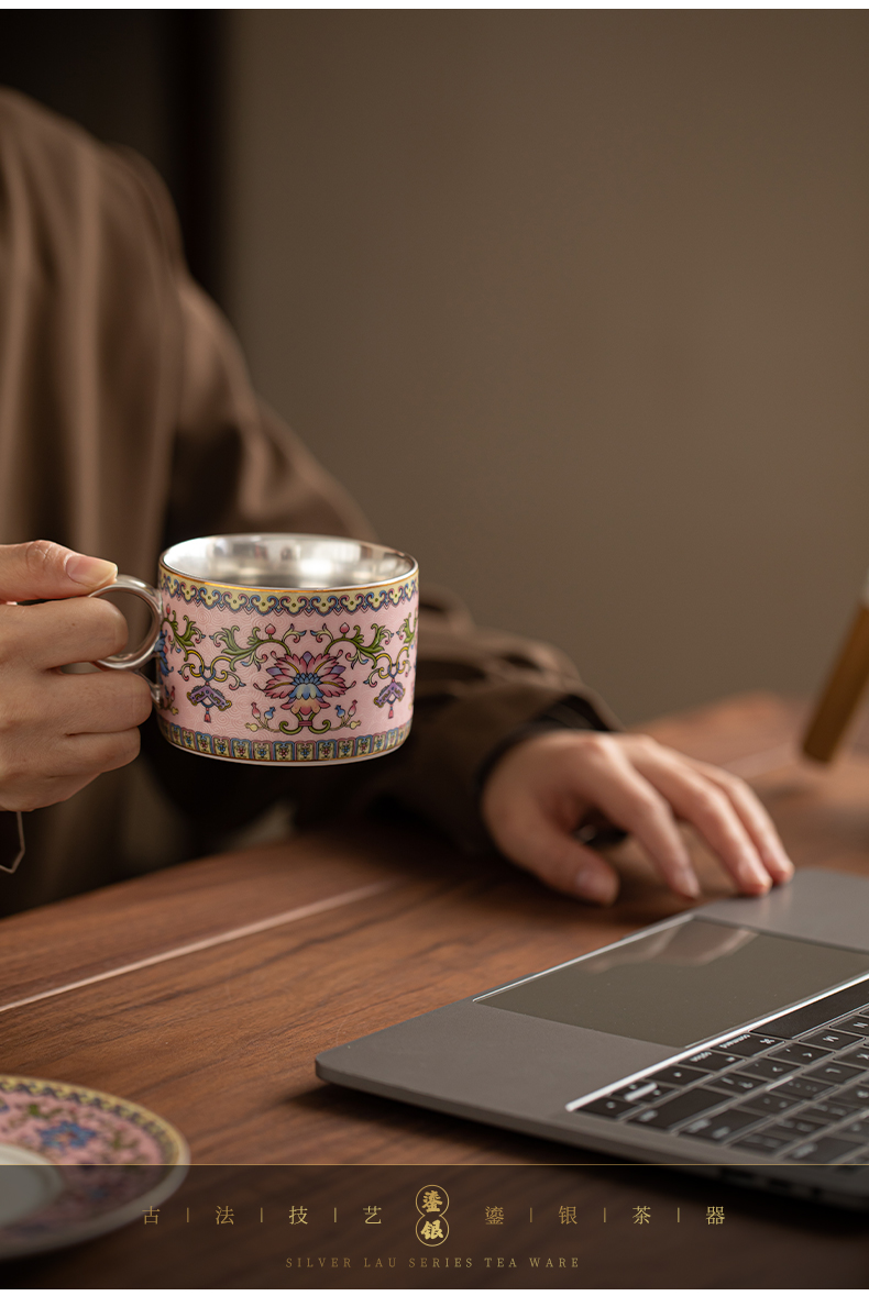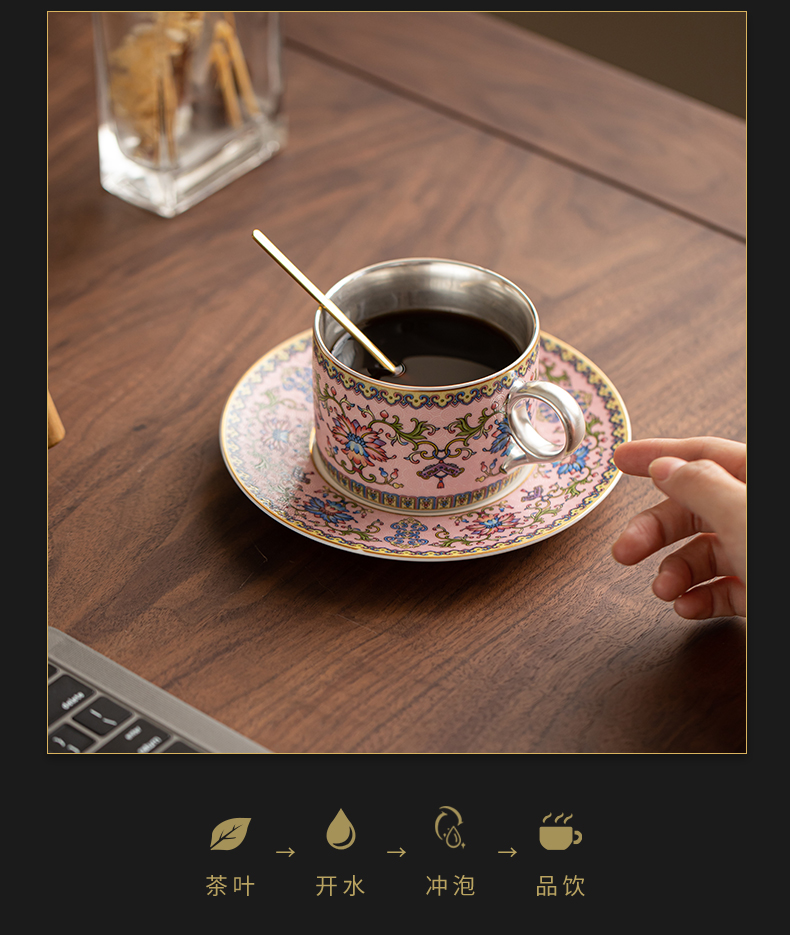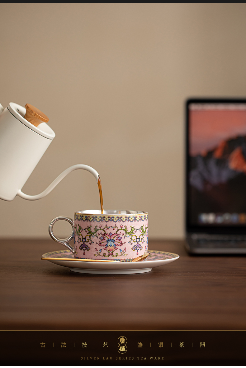 苏氏陶瓷(SUSHI CERAMICS) 鎏银缠枝莲咖啡杯粉 J1173 250ml 粉色(单位:个)