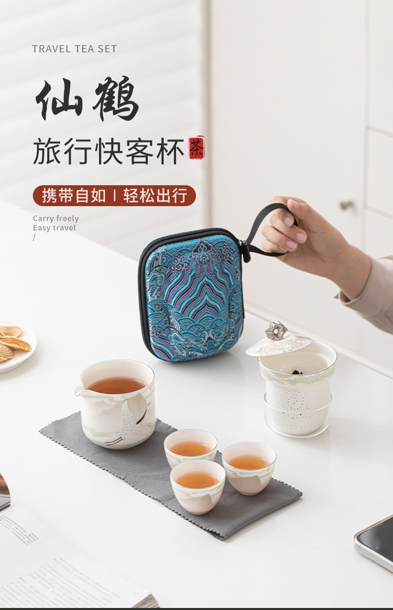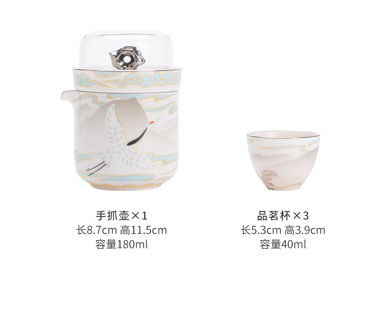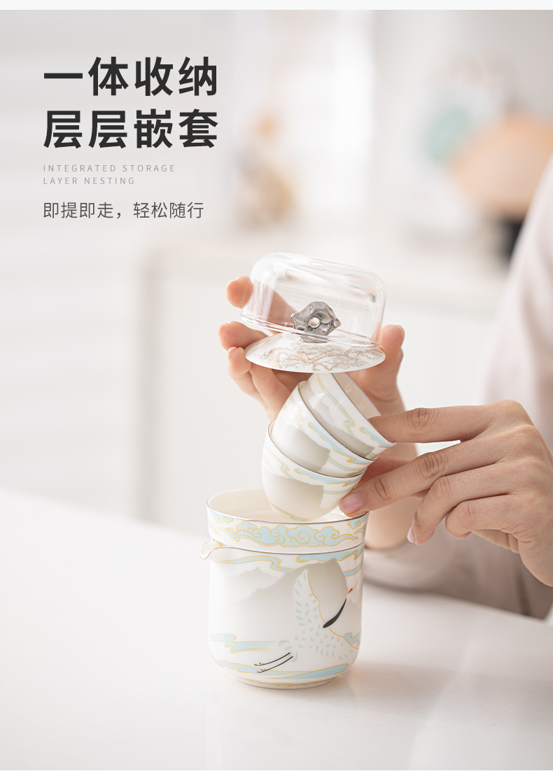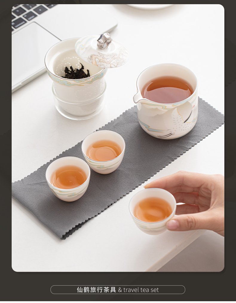 苏氏陶瓷(SUSHI CERAMICS) 白瓷仙鹤旅行茶具 J1189 小套装*4头 白色(单位:套)