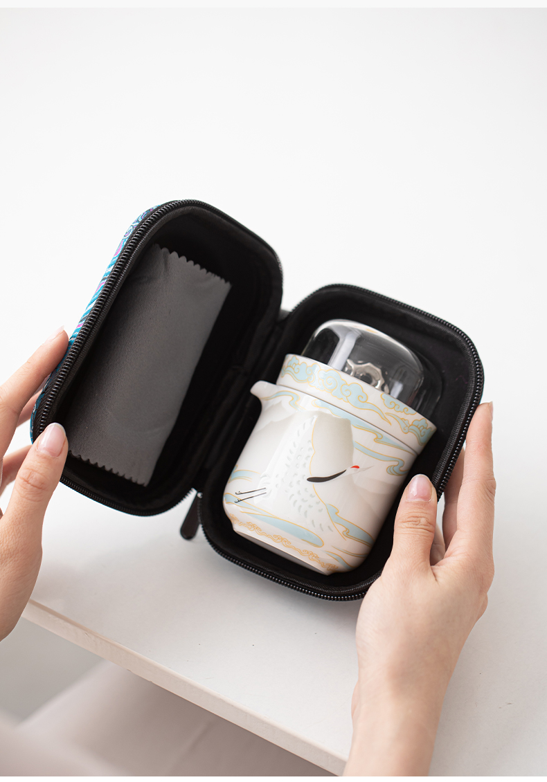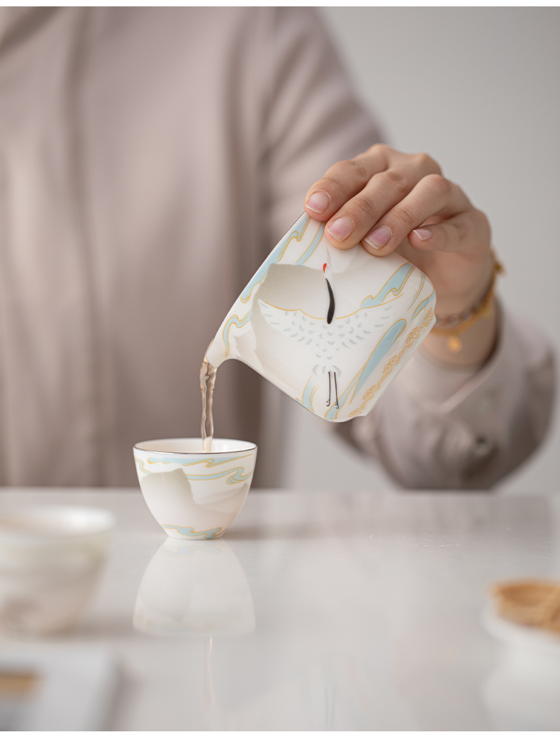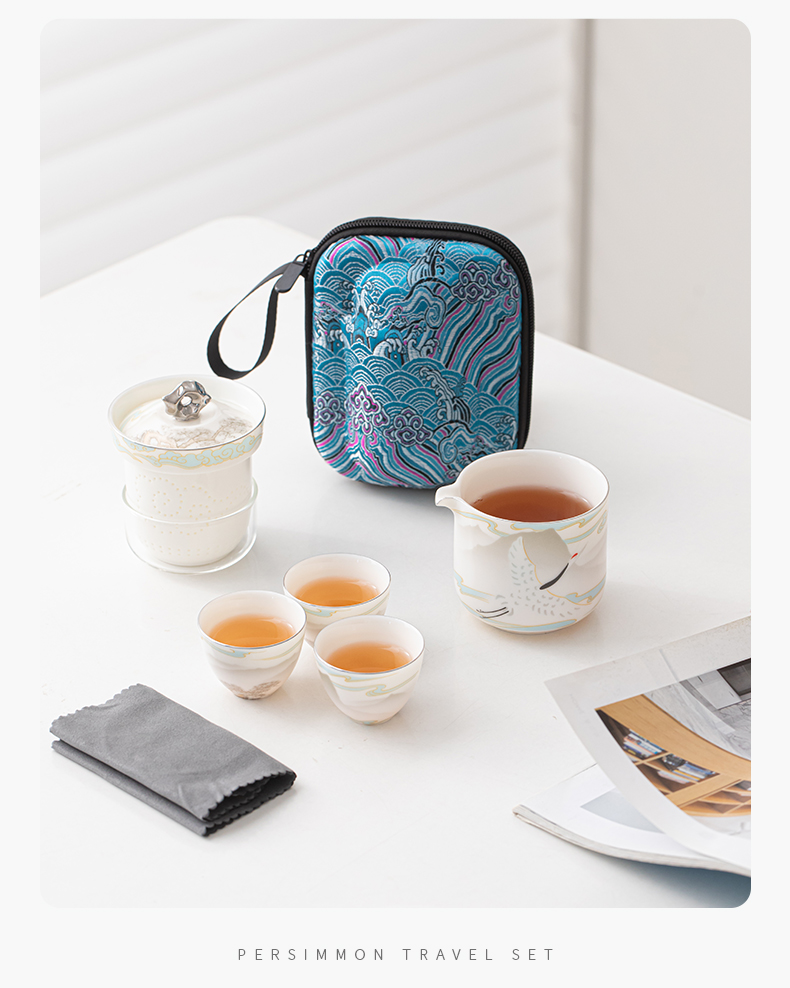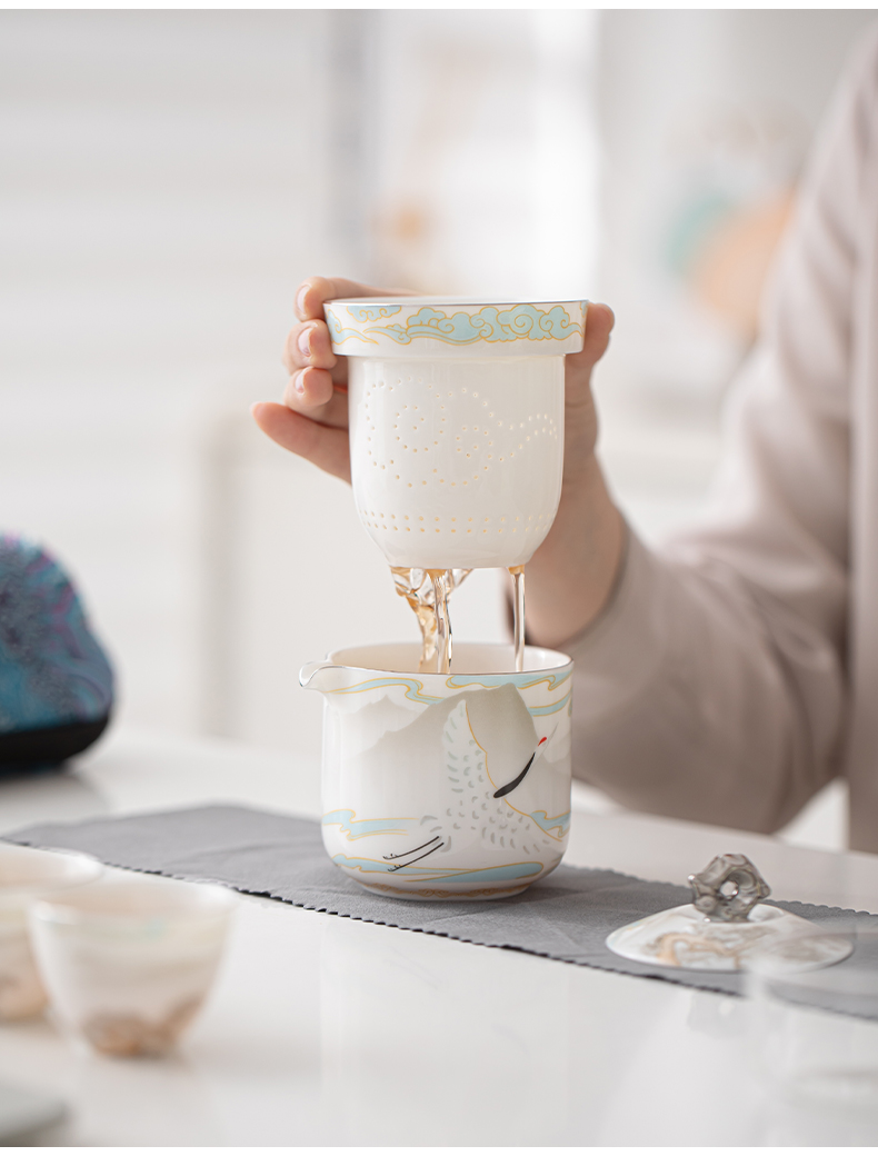 苏氏陶瓷(SUSHI CERAMICS) 白瓷仙鹤旅行茶具 J1189 小套装*4头 白色(单位:套)
