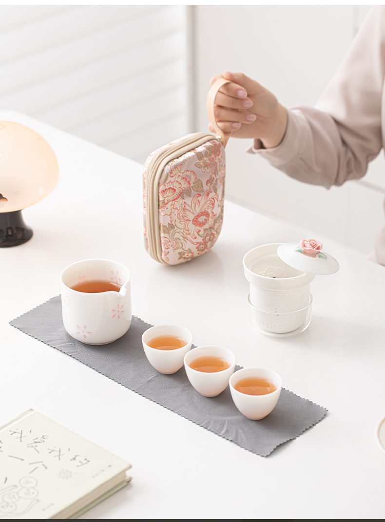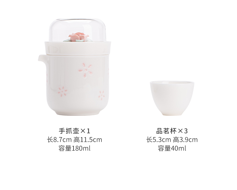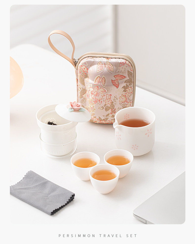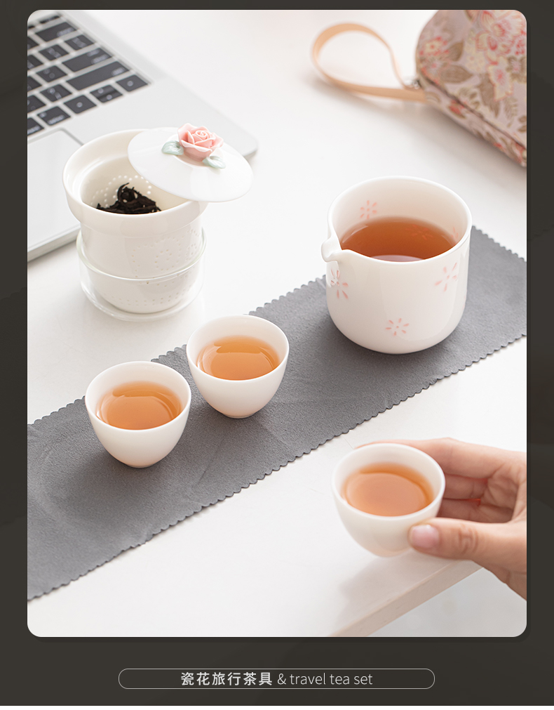 苏氏陶瓷(SUSHI CERAMICS) 粉红佳人便捷旅行茶具 J1188 4头 白色(单位:套)